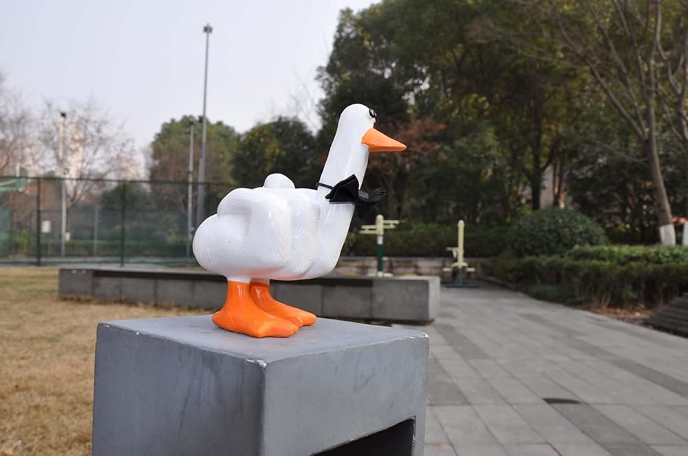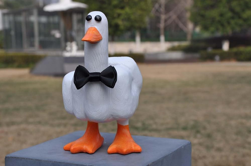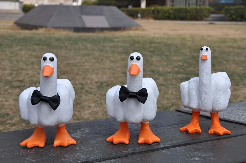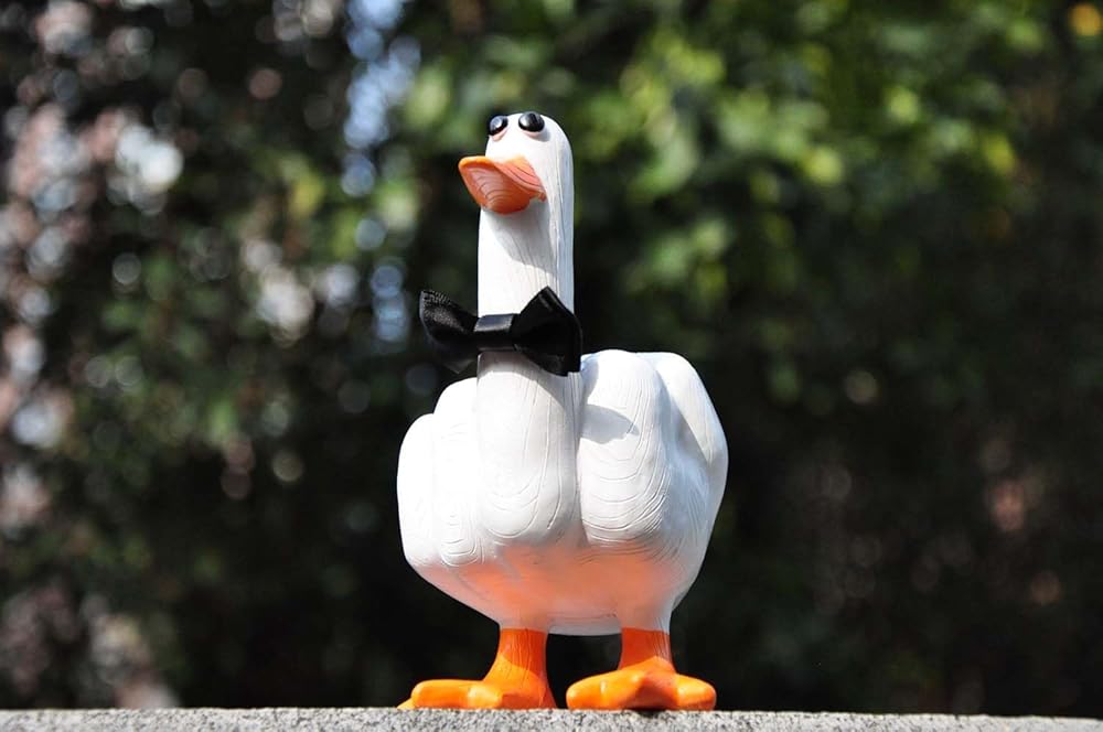 أضف لمسة من الفكاهة إلى ديكور مكتبك أو منزلك مع تمثال البطة ذو الإصبع الأوسط هذا