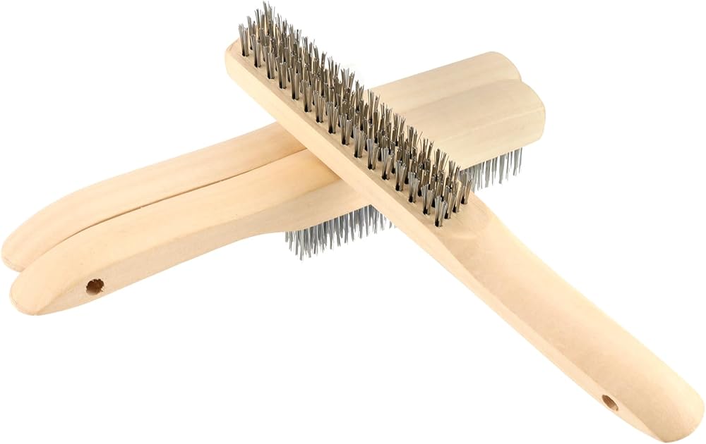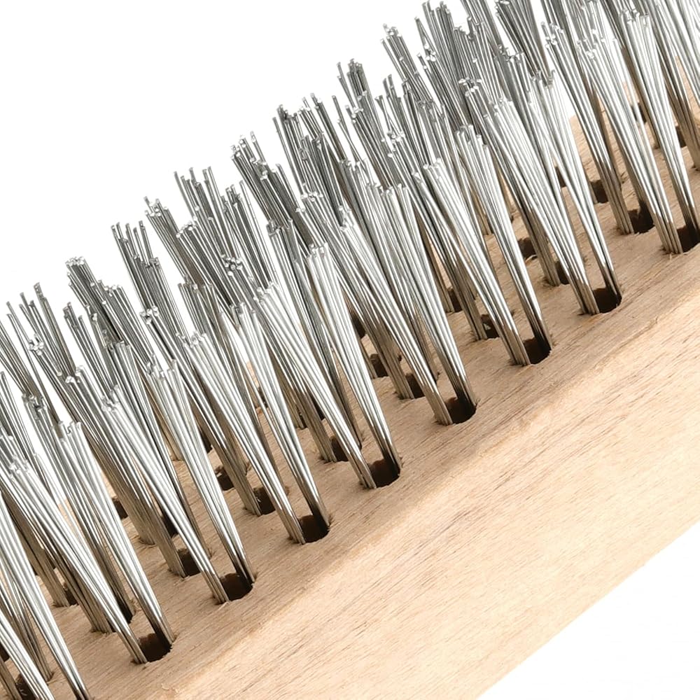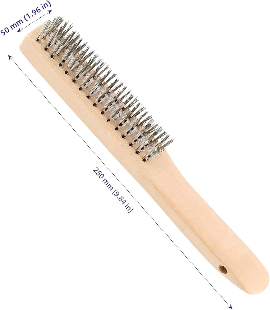 SPACE SAVING - Our welding brush features a curved wooden handle with pre-drilled holes for hanging. When not in use, the brush can be hung to save space.