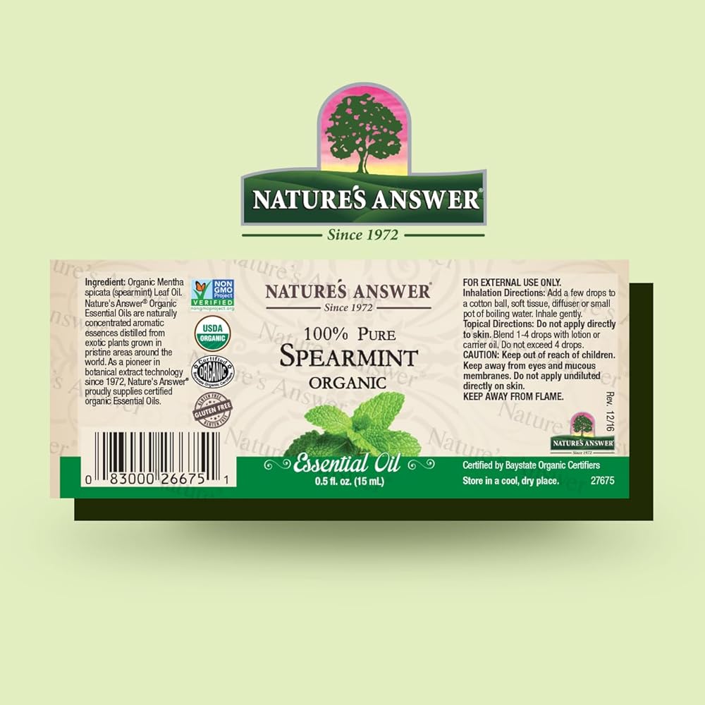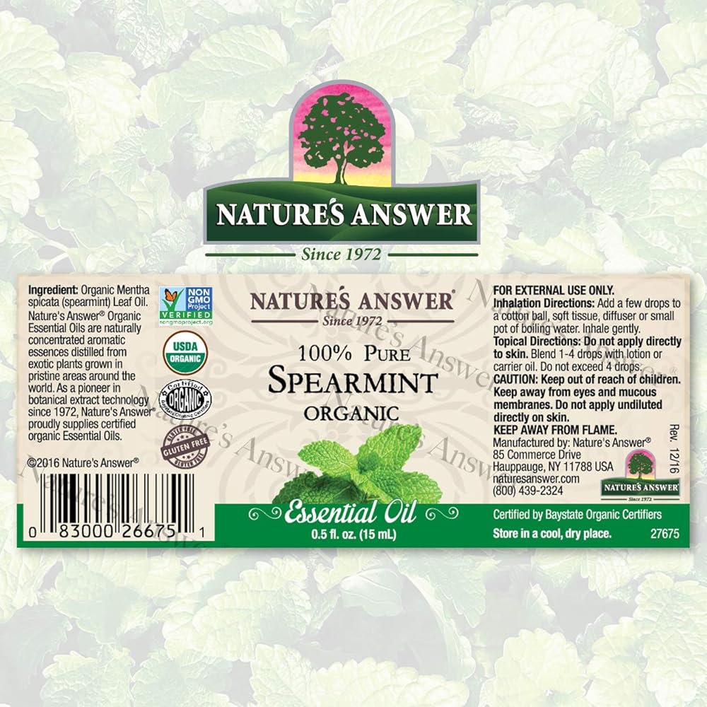 Nature's Answer Essential Oils are 100% Pure with No Synthetic Colors or Stabilizers and are GC/MS Tested for Purity. Therapeutic Grade (0.5 Fl Oz / 15 ml) USDA. All of our oils are certified USDA Organic. Only One Ingredient - 100% Pure & Undiluted
