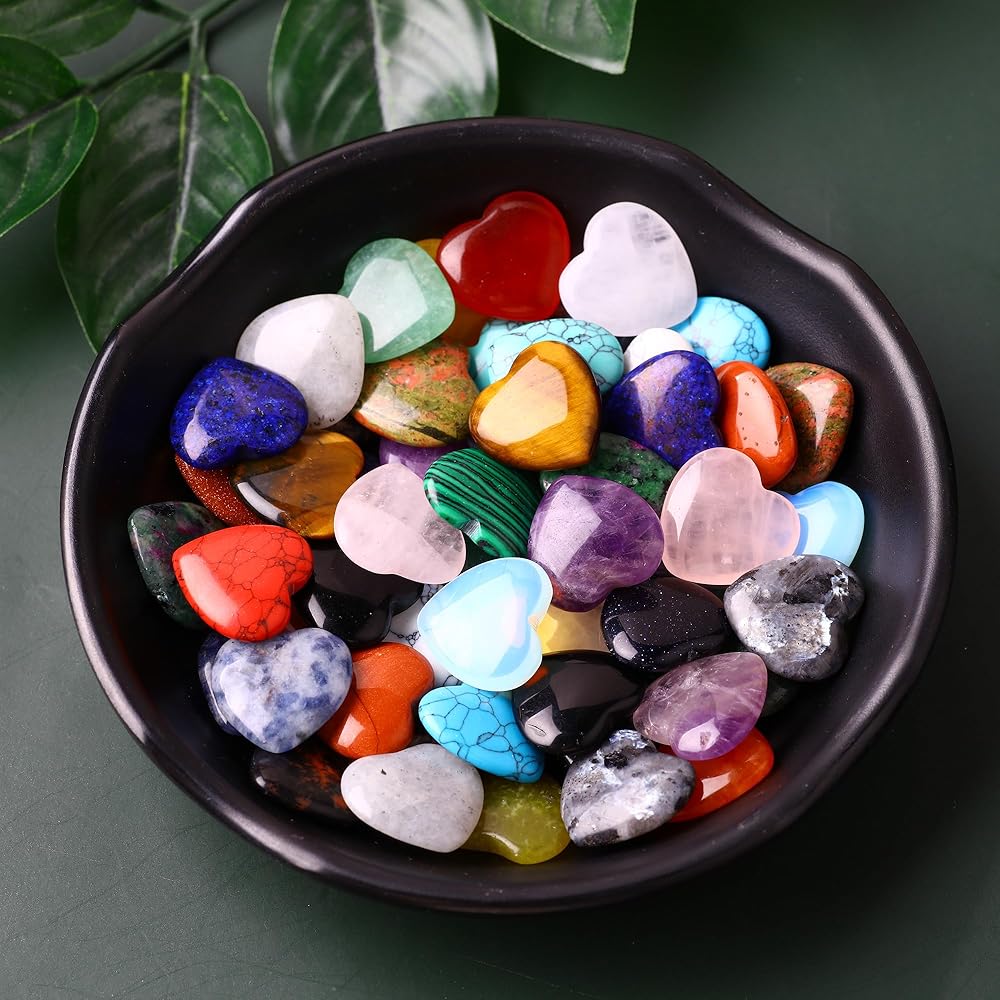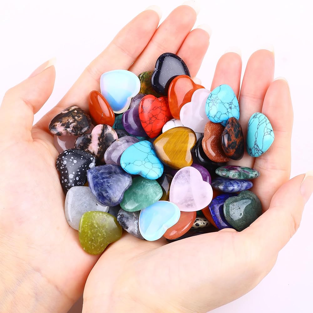 💖【صناعة المجوهرات】: باستخدام هذه الأحجار المصقولة على شكل قلب، يمكنك صنع مجوهرات مشرقة ونابضة بالحياة بنفسك، وثقب فتحة على الحجر وربطها بالخاتم والأساور وسلاسل السترة والحلي وتصميمات المجوهرات الأخرى بأسلوبك الخاص. أرسل هدية خاصة إلى حبيبك وصديقك، اصنعها بنفسك لممارسة تغليف الأسلاك. ضعها في مكتب العلاج وطاولات الصلاة، مما يجعل الناس يشعرون بالنقاء والإخلاص الذي تجلبه أحجار الكريستال.
