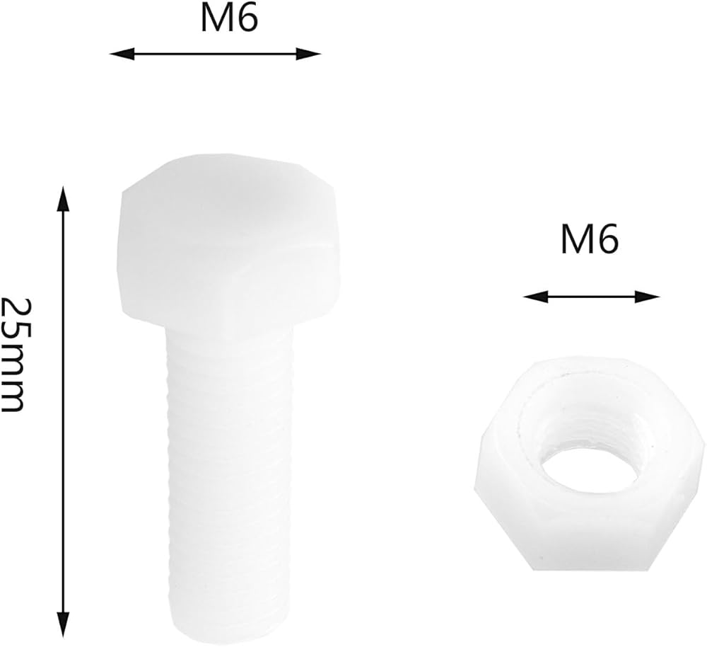 You will get 30 pairs of nylon screws and nuts. The nylon thread is M6 x 25mm and the nut is M6 thread