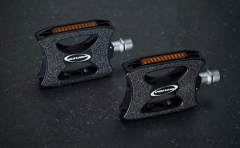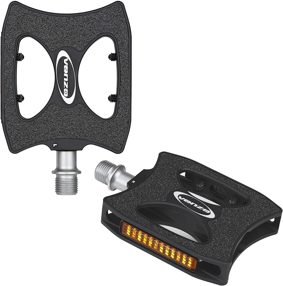 دواسات دراجة VENZO Mountain Bike City E-Bike CNC من الألومنيوم Cr-Mo محكمة الغلق مقاس 9/16 بوصة - مع سطح من ورق الرمل المضاد للانزلاق - قبضة عصرية