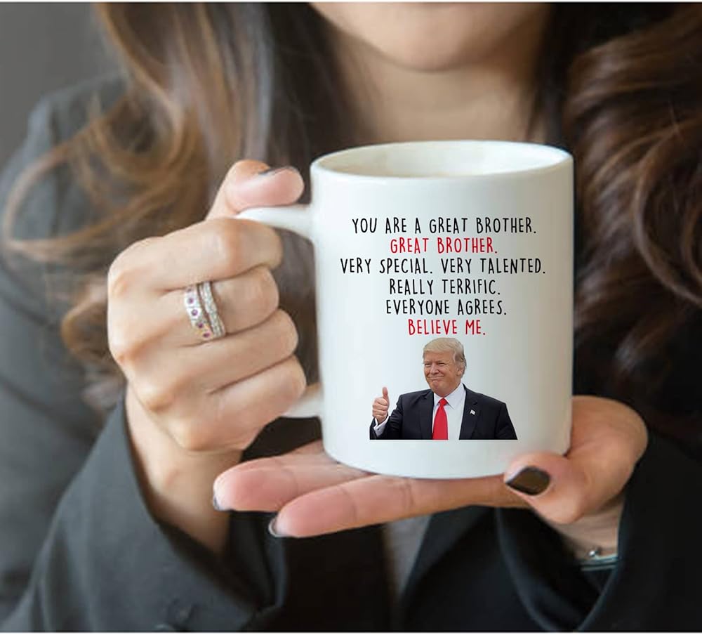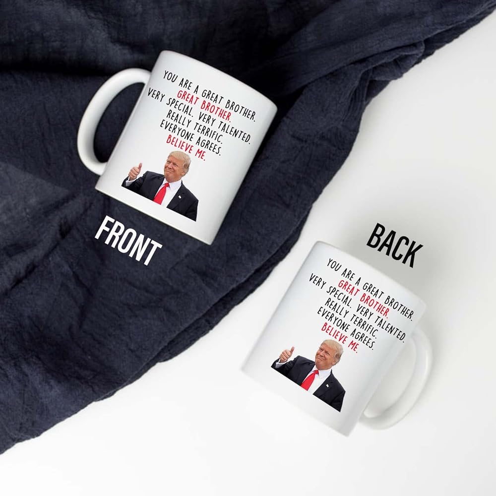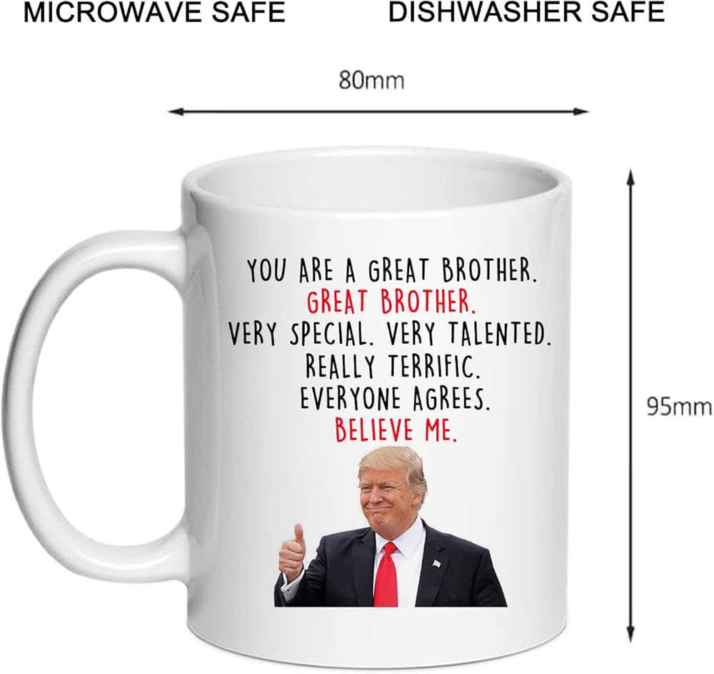 أكواب قهوة دونالد ترامب براذر - هدايا جديدة للأخ من الأخت/الأخ - أنت أخ عظيم، هدايا للأخ، هدايا للأخ لأعياد الميلاد/عيد الميلاد، 11 أونصة