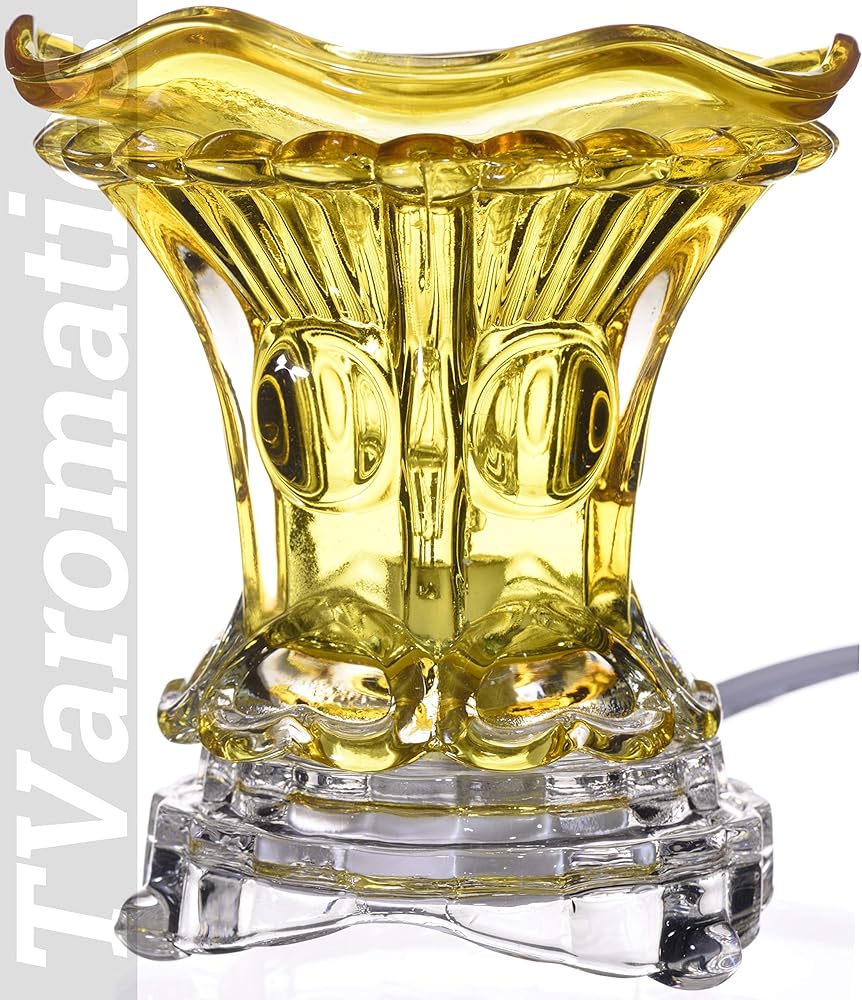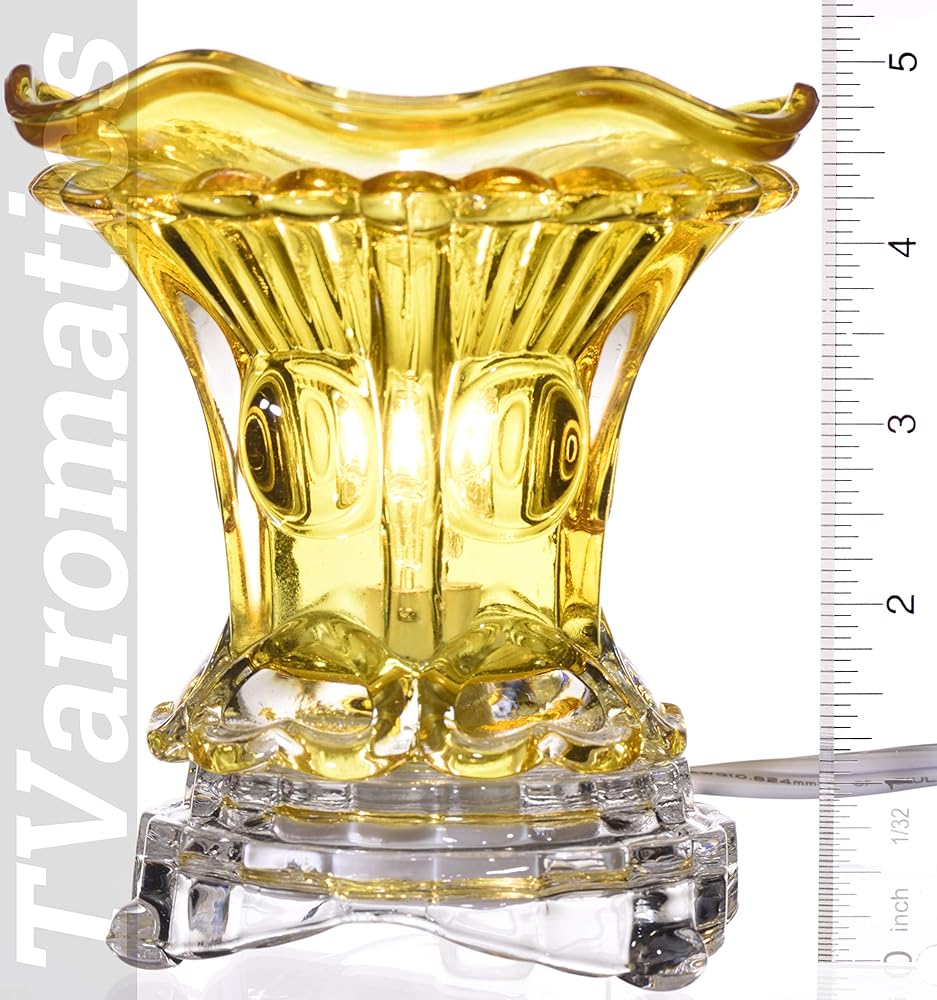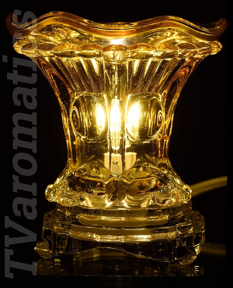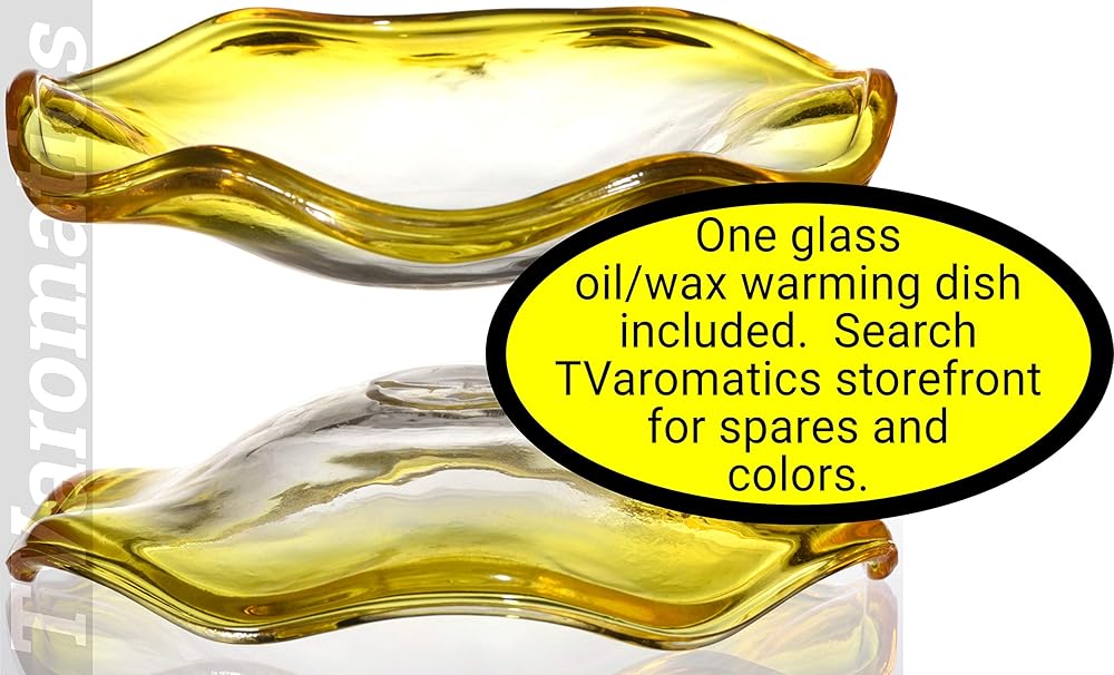 Place wax tart or drop aromatic oil into the included matching amber glass dish to warm and diffuse the scent.