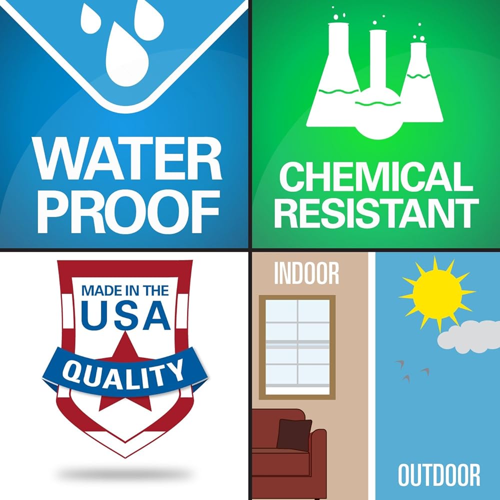 DURABLE – waterproof and chemical resistant to withstand the outdoors and cleaning. Adhesive will not dissolve in water/moisture like other decals. Holds up to cleaning and when properly applied will last 5-8 years outdoors. Colored vinyl that isn't printed lasts longer in the sun.