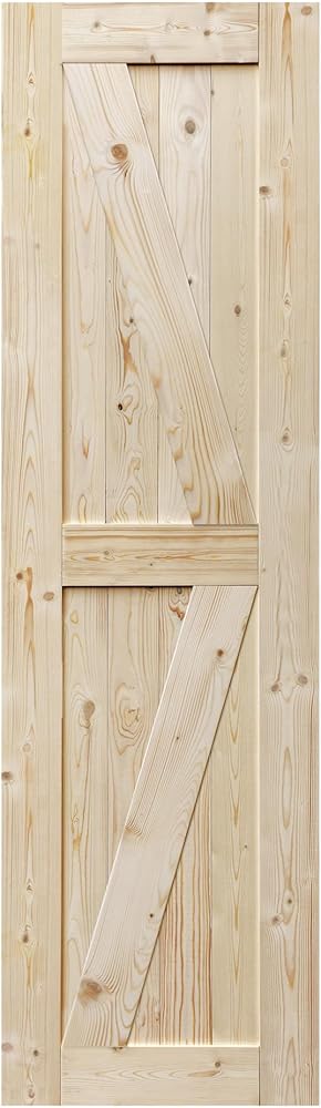 • Unfinished Barn Door is Made of 100% Natural Spruce. Surface is unfinished and ready to be stained. Unfinished door can be stained or painted to desired finish/color. Single Door. Sliding Rail Kit not included.