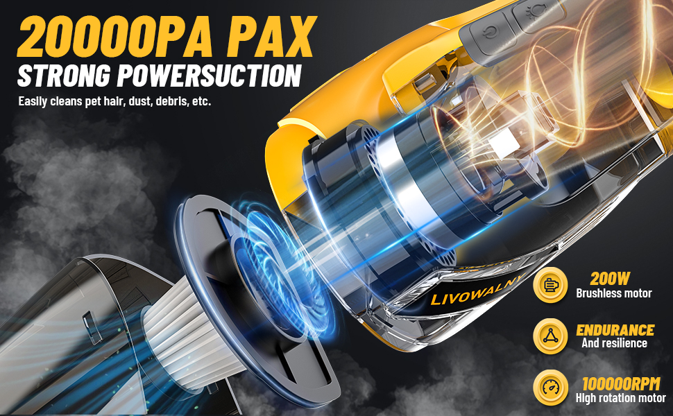 • الرفيق المثالي لتنظيف السيارة: مع شفط قوي بقوة 20 كيلو باسكال، وملحقات متعددة الاستخدامات، وإضاءة LED مدمجة، تم تصميم LIVOWALNY لتنظيف شامل للسيارة، ومعالجة الأوساخ والحطام وشعر الحيوانات الأليفة دون عناء.