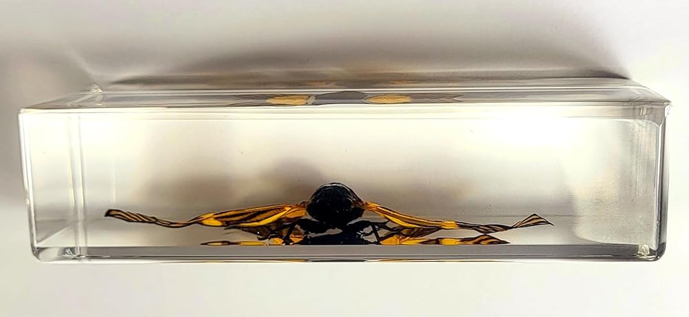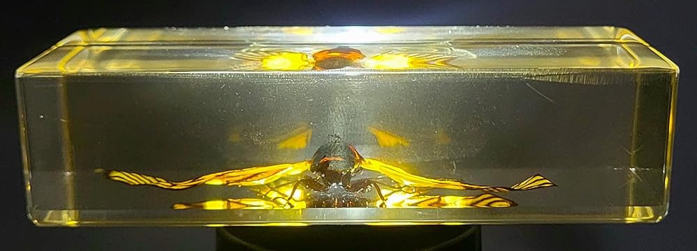 • You will receive one real Honeybee in resin specimens. Specimen Size: Specimen Size: 44mm x 28mm x 16mm / 1.7 x 1.1 x 0.6 Inches; Weight 25g / 0.88oz; (Photos taken under bright light). These samples may have small defects, bubbles, internal irregularities, etc. They may also differ from each other due to the fact that all insects, animals, beetles are different in nature. Photo under LW UV light 365nm was taken with using powerful 10w flashlight with optical UV filter!