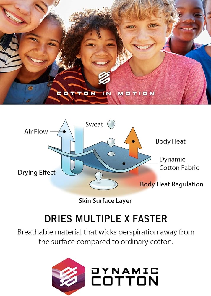 - قطن ديناميكي - DNA من ألياف مزيج القطن الطبيعي التي تجف عدة مرات بشكل أسرع مقارنة بالألياف الأخرى