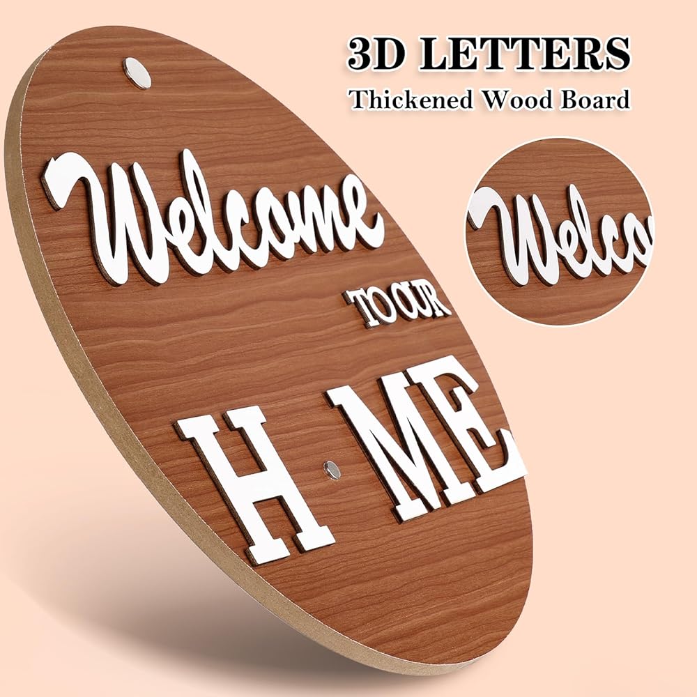 • Good material: The welcome sign for front door is made of premium quality wood, which have smooth surface, no smell, durable and safe, don't worry about getting hurt.The Classic colors easily brighten up your home decor.