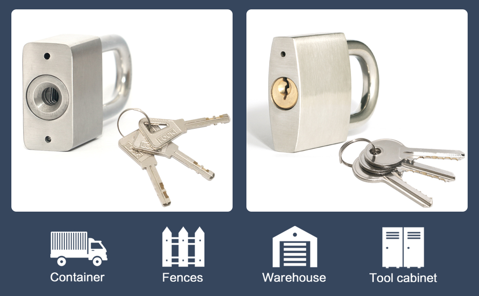تم تصميم هذه الأقفال لمقاومة التآكل الناتج عن مياه البحر، وتحمل تأثير المطر، وتحمل التعرض المكثف لأشعة الشمس. إنها مناسبة تمامًا للاستخدام في مختلف الأماكن الخارجية.