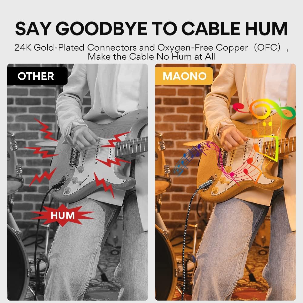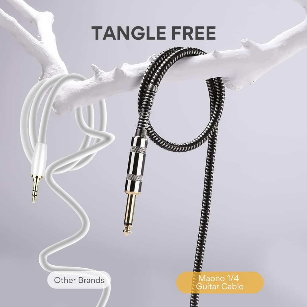 كابل جيتار MAONO 20FT 1/4 بوصة كابل أداة كهربائية سلك أمبير للجيتار الكهربائي، جيتار باس، مندولين كهربائي