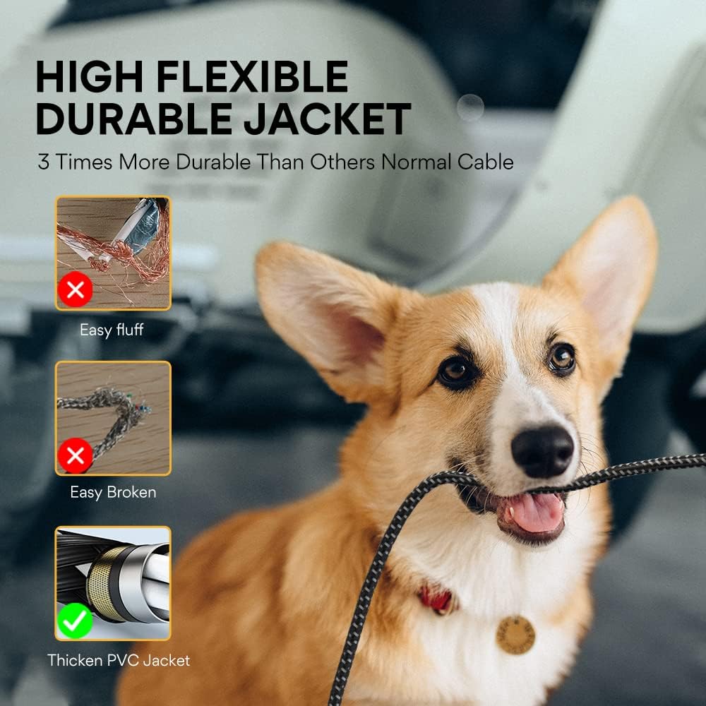 • ✅مصممة لتدوم طويلاً: أكثر من 10000 اختبار لعمر الانحناء، موصلات عالية الجودة مطلية بالذهب عيار 24 قيراط، جميع الأطراف بها تخفيف الضغط على شكل زنبركي يمنع الكابلات من السحب، مقاومة للتآكل، سترة قماشية من التويد المضفرة بقطر خارجي 7 مم (OD) ممكنة خالية من التشابك ومتينة للغاية.