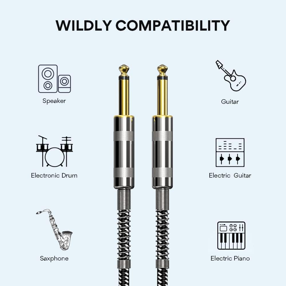 • ✅اختيارك الأفضل: موصلات معدنية مستقيمة إلى مستقيمة مقاس 1/4 بوصة، تضمن اتصالاً آمنًا بأي أداة أو دواسة أو مقبس أمبير. إنه مثالي للاستخدام مع الجيتار الصوتي، والجيتار الكهربائي، وجيتار الباس، ولوحة المفاتيح، وتأثيرات الدواسة، ومكبر الصوت، ولوحة الخلط، وأنظمة السماعات، ومنسقات الاستوديو، وغيرها من تطبيقات كابلات الأدوات غير المتوازنة.