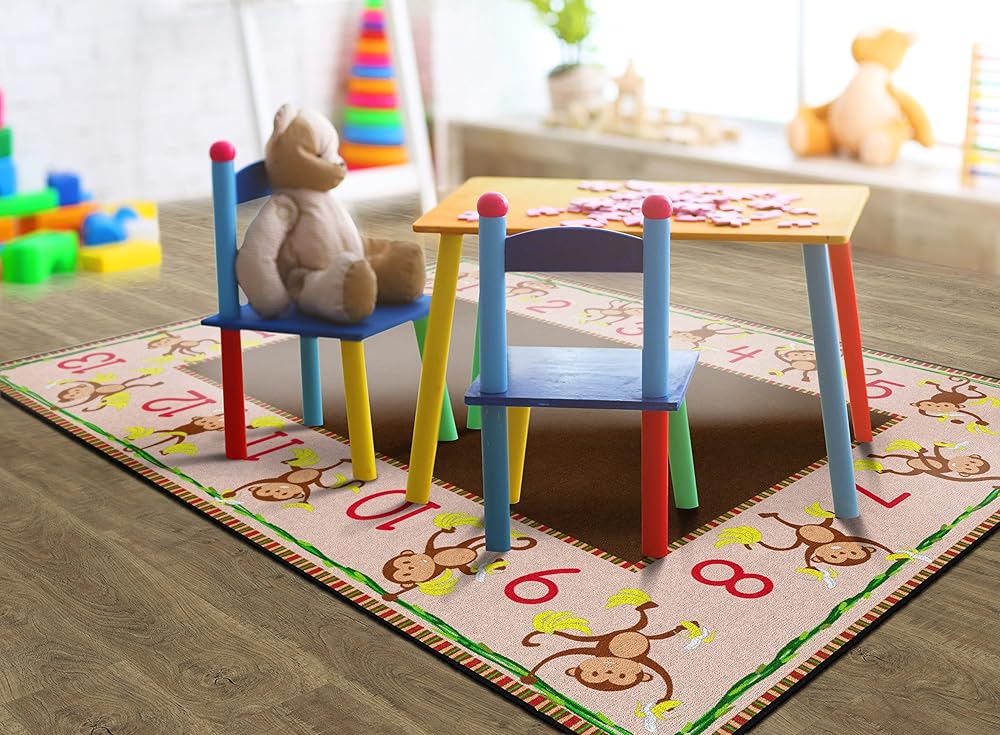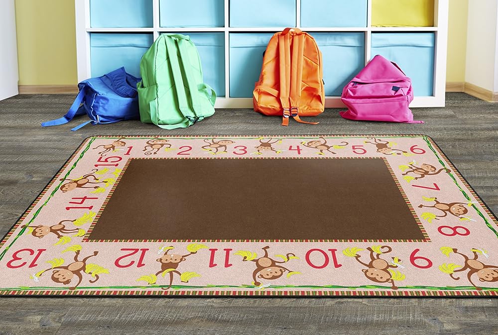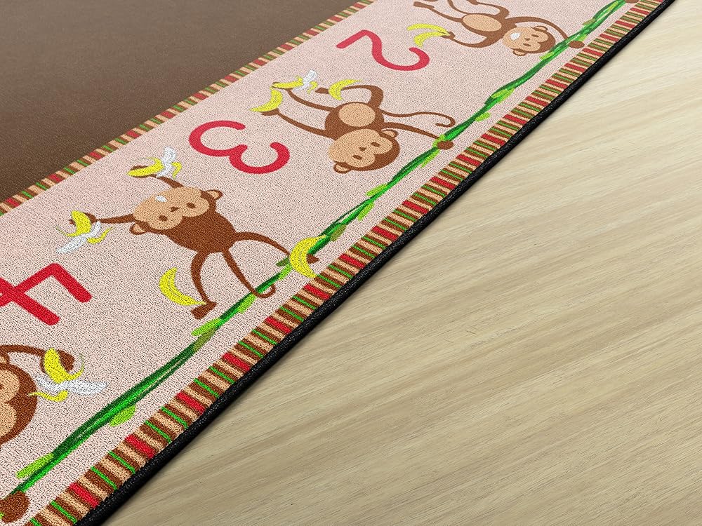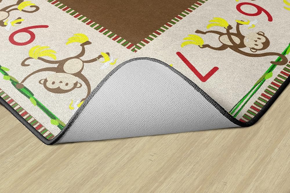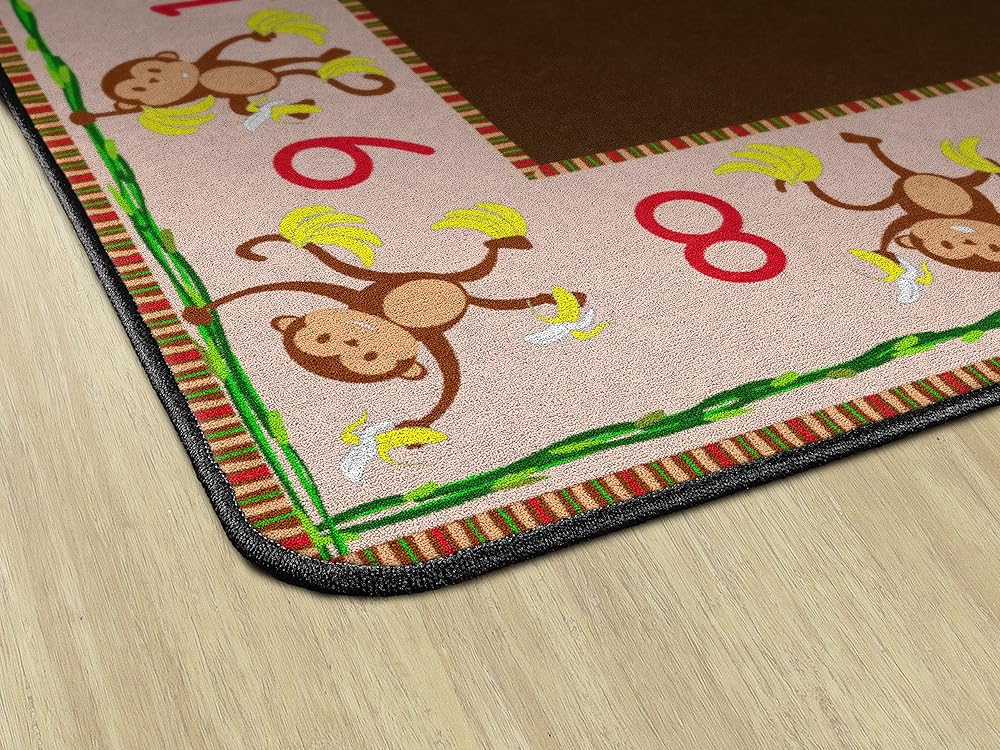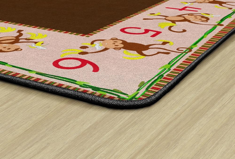 سجادة Flagship Carpets سجادة تعليمية متعددة الألوان لغرفة الأطفال أو سجادة غرفة اللعب، أو منطقة التعلم المنزلي أو سجادة الفصل الدراسي، (مقعد 20)، 6 أقدام × 8 أقدام و4 بوصات، عد القرود (10)