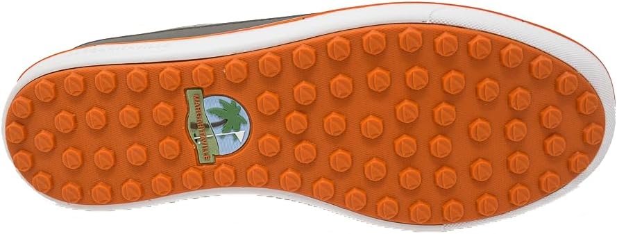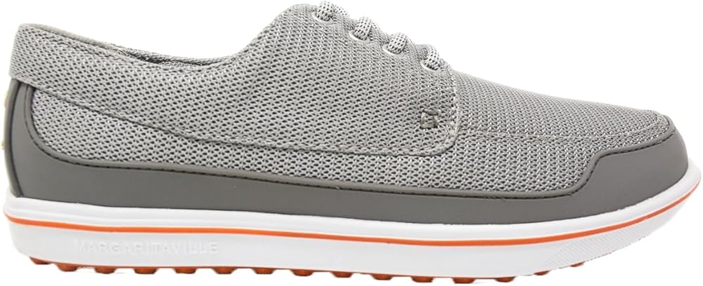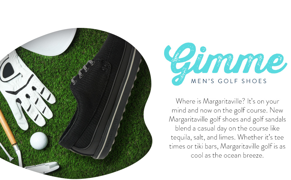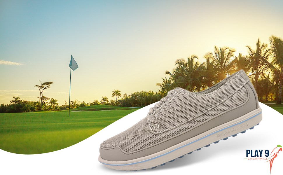 Fins Up! Step into ultimate comfort and style with the Margaritaville The Gimmie Golf Shoes. Crafted to meet the demands of avid golfers, our golf shoes for men are designed with our better-fit lace system to provide a snug fit and remain securely fastened throughout your game. With their versatile, stylish appeal, these golf shoes allow you to seamlessly transition from the office to the golf course. These athletic shoes feature a performance rubber toe guard and stability heel frame to offer excellent support for every swing. Our sport shoes are engineered with a flex/fresh air mesh upper and padded collar for optimal breathability on and off the course. The lightweight, sports compression-molded EVA midsole provides shock-absorption action and stability, making long rounds of golf more comfortable. With flexible active TRAK grip treads on their outsoles, our athletic lace-up shoes offer maximum traction so you can maintain solid footing while swinging and walking on various terrains. Our sports shoes feature an embossed Margaritaville logo and are available in four colorways and different sizes so you can keep your feet ultra-comfortable and stylish in any setting. With its performance-driven style and practical features for everyday wear, be on top of your game with the Margaritaville The Gimmie Golf Shoes.