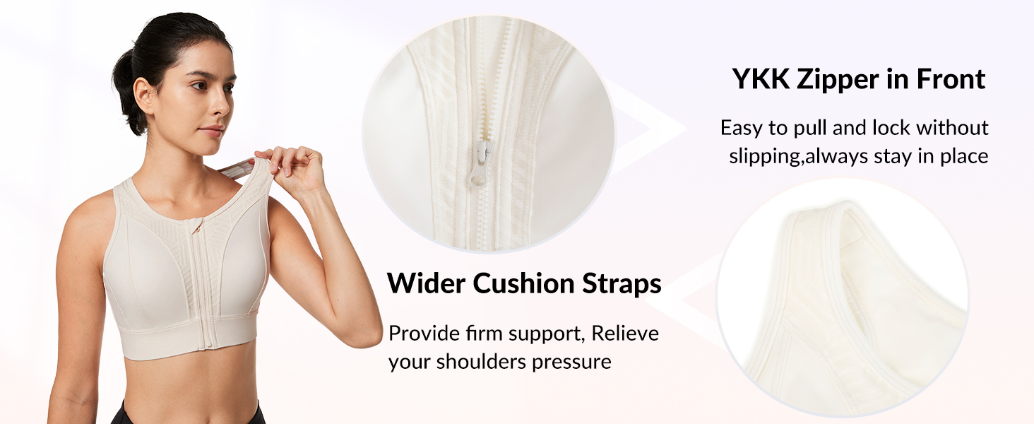 حمالة صدر رياضية بسحاب أمامي - لا يوجد شيء أكثر إزعاجًا من الاضطرار إلى القيام بخدعة ملتوية لخلع حمالة الصدر الرياضية بعد التمرين والتعرق، ما عليك سوى فك السحاب! سهل للغاية! وهنا تأتي متعة حمالة الصدر الرياضية ذات السحاب الأمامي. خاصة إذا كنت قد تعرضت لأي نوع من إصابات/جراحة الكتف أو حتى أثناء الرضاعة. سحاب YKK مع جهاز مضاد للخدش، سيبقى ثابتًا طوال اليوم، والجزء العلوي يحتوي على غطاء قماشي، ويمنعه من وخزك، ولا يلاحظ حتى وجوده بعد ارتدائه.