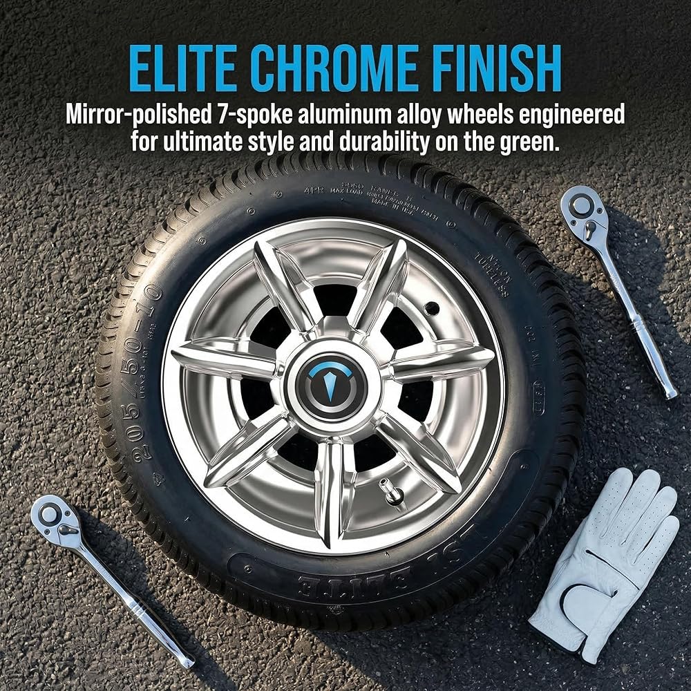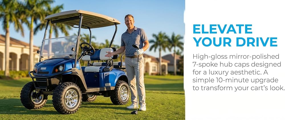 أغطية عجلات عربة الجولف مقاس 10 بوصة، أغطية محور مطلية بالكروم محسنة بـ 7 قضبان لسيارة النادي/E-Z-GO/YA/Star Car/Excar ونماذج أخرى. (مجموعة من 4)