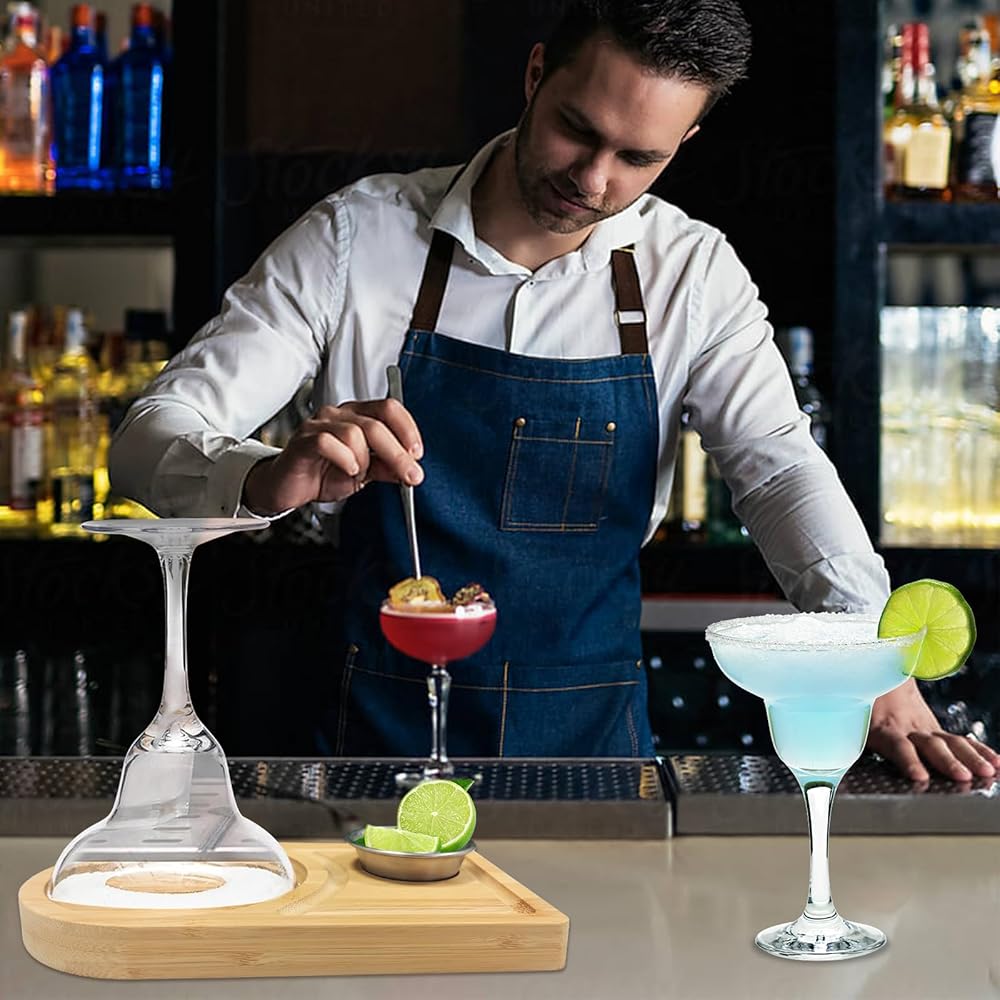 "These cocktail rimmers for drinks bowls are an incredibly handy addition, allowing you to place lime or lemon wedges for easy rimming. Our margaritas salt rimmer set is not just a functional tool but also fantastic gifts for bartenders. In summary, the margarita board is designed to make your cocktail preparation effortless and stylish."