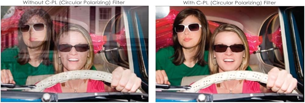 Circular Polarizer - Light & sun rays which are reflected become polarized. Circular polarizing filters zero in on which light rays enter your cameras lens. They then remove unwanted reflections from non-metallic surfaces such as water or glass and also saturate colors providing better contrast. The effect can be seen through the viewfinder and the LCD screen and changed by rotating the filter. The filter factor varies according to how the filter is rotated and its orientation to the sun. Circular polarizing filters do not affect the overall color balance of a shot. Includes a 1 Year Warranty.