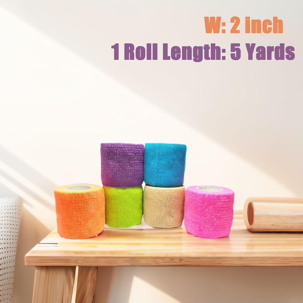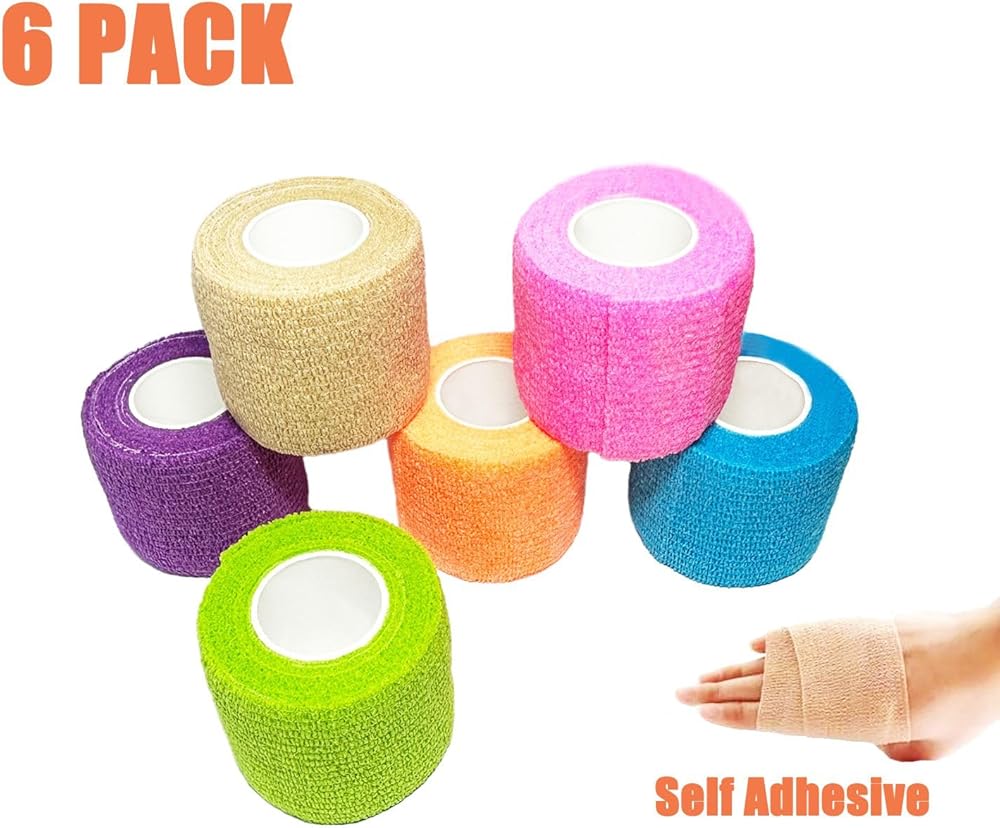 غلاف ضمادة ذاتية اللصق، 2 × 5 ياردات، غلاف ضمادة مرنة، شريط ضمادة لاصقة ذاتيًا، 6 عبوات