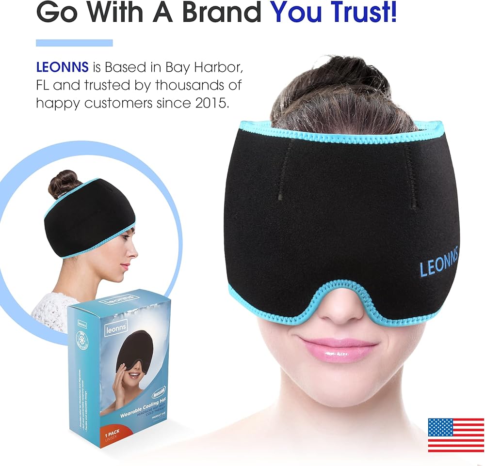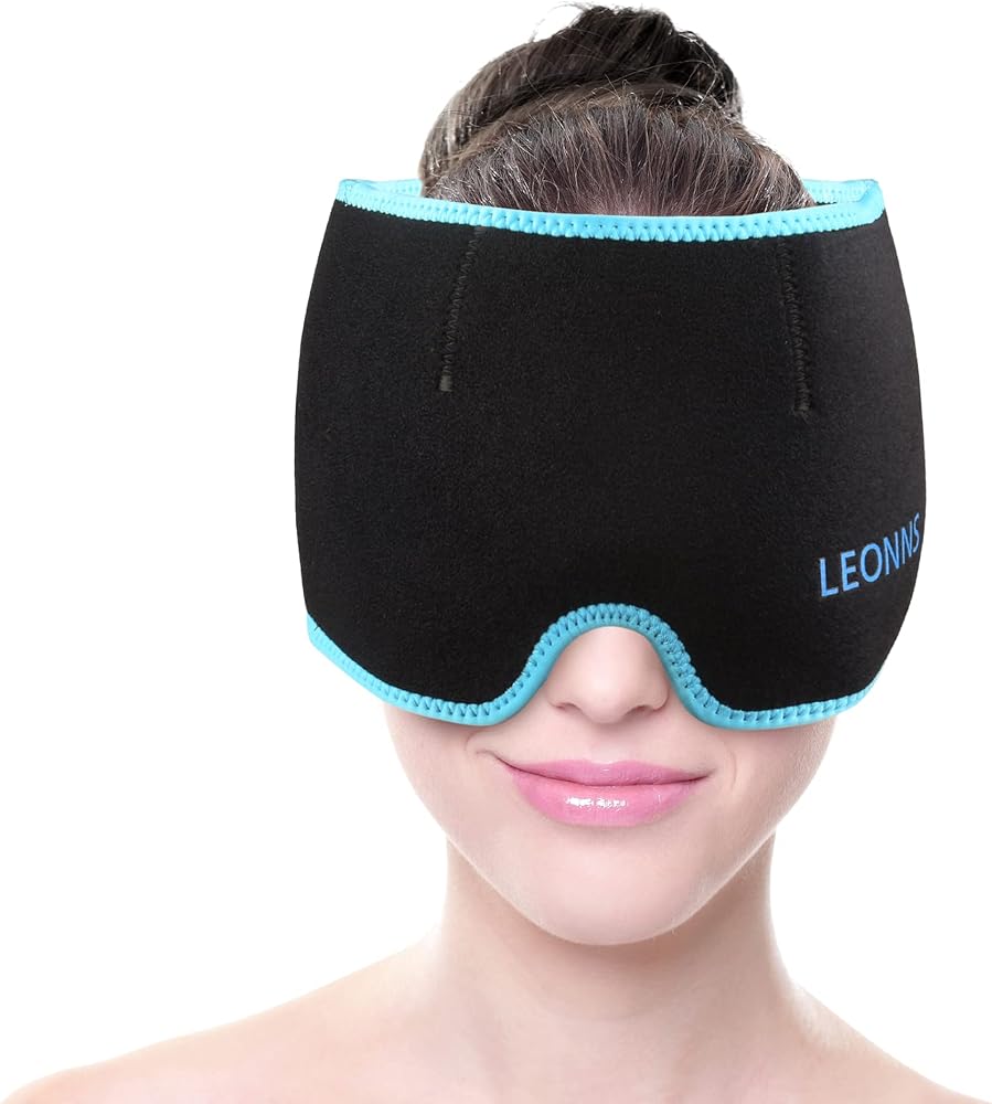 CHILL: Your ice face mask will relieve pain while cooling down your head and neck which will reduce swelling and inflammation. Use your headache relief hat with the eye flaps covering your eyes, or higher up to watch your favorite show while you chill