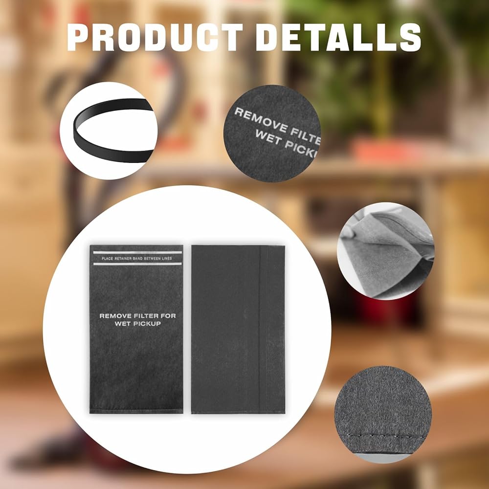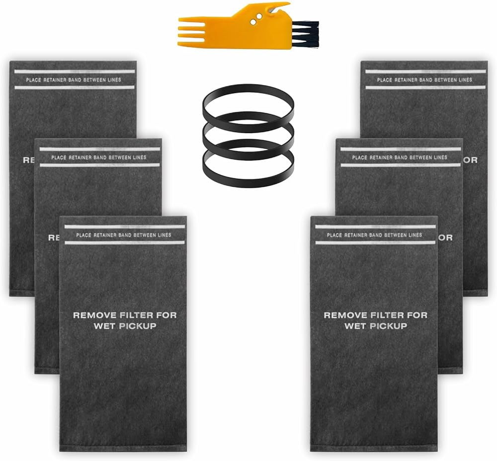 6 أكياس فلتر من قماش الغبار (موديل 9-38737) تعمل مع فلاتر مكنسة كهربائية من متجر بسعة 2 إلى 2.5 جالون ومكنسة كهربائية على شكل دلو باورهيد، تتضمن 6 أكياس مكنسة من متجر الحرفيين، و3 أشرطة تثبيت، وفرشاة واحدة