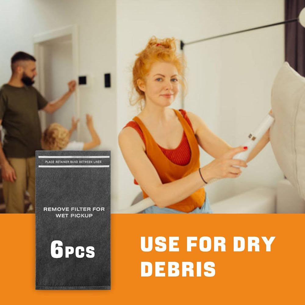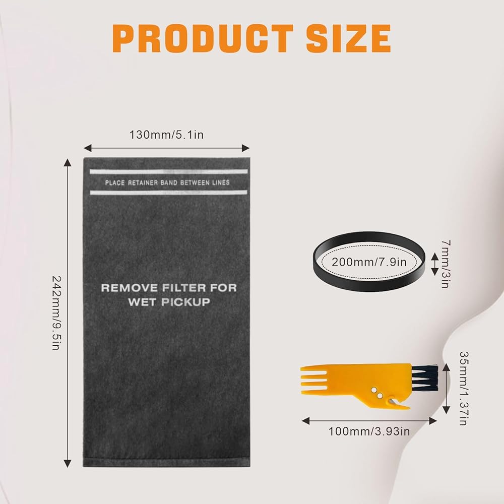 The package contains 6 craftsman wet dry vac filter bags specifically designed to replace the craftsman wet dry vac filter, includes 3 fixing straps and 1 small brush.