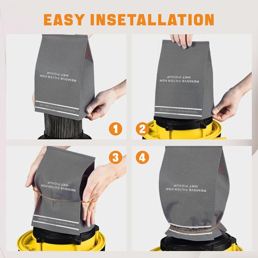 Slide the 9-38737 onto craftsman vacuum filters and secure the dust bag onto the filter with a strap. Ensure that the filter bag completely covers the filter cage to prevent dust leakage.