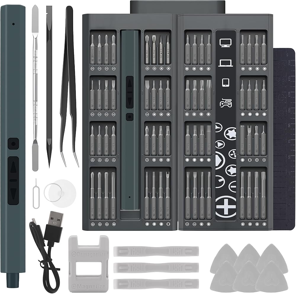 مجموعة مفكات كهربائية صغيرة - 82 في 1 مفكات كهربائية دقيقة ومثقاب، مع 64 قطعة مغناطيسية، بطارية قابلة لإعادة الشحن، مفك عزم دوران الطاقة مع أضواء LED لساعة كاميرا الهاتف