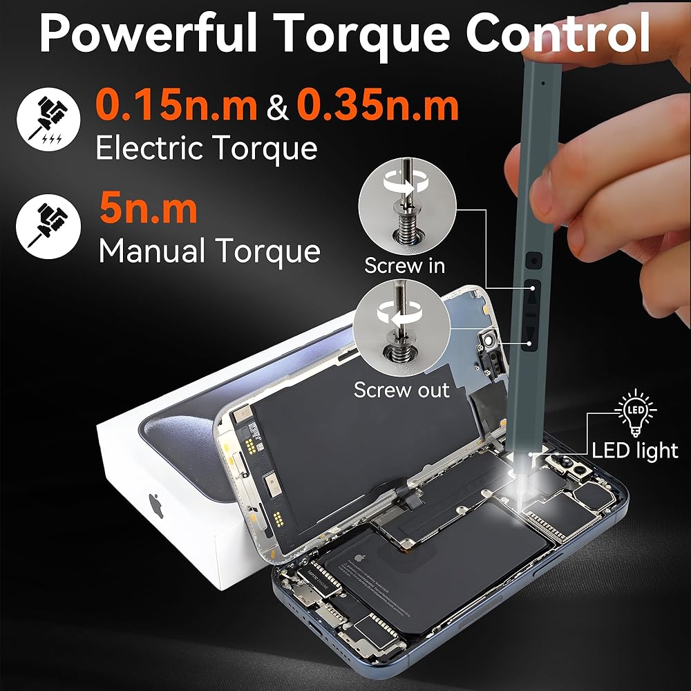 【مفك عزم الدوران الكهربائي】سرعة مفك البراغي الكهربائي الدقيق 200 دورة/الدقيقة، عزم الدوران الكهربائي 0.15 نانومتر إلى 0.35 نانومتر، عزم الدوران اليدوي 5 نانومتر. يمكن لعزم الدوران المثالي أن يحمي معداتك ويطيل عمر خدمة مفك البراغي الصغير.