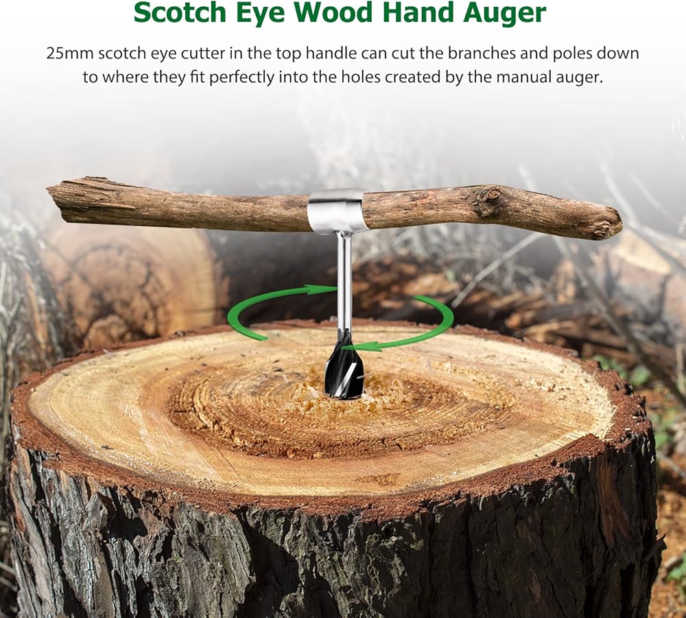 👍مثقاب يدوي من خشب سكوتش: يمكن لقاطع العين سكوتش 25 مم في المقبض العلوي أن يقطع الفروع والأعمدة إلى حيث تتلاءم تمامًا مع الثقوب التي أنشأها المثقاب اليدوي.