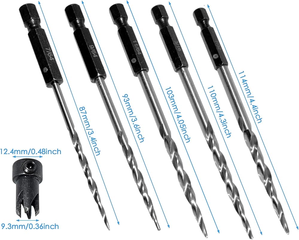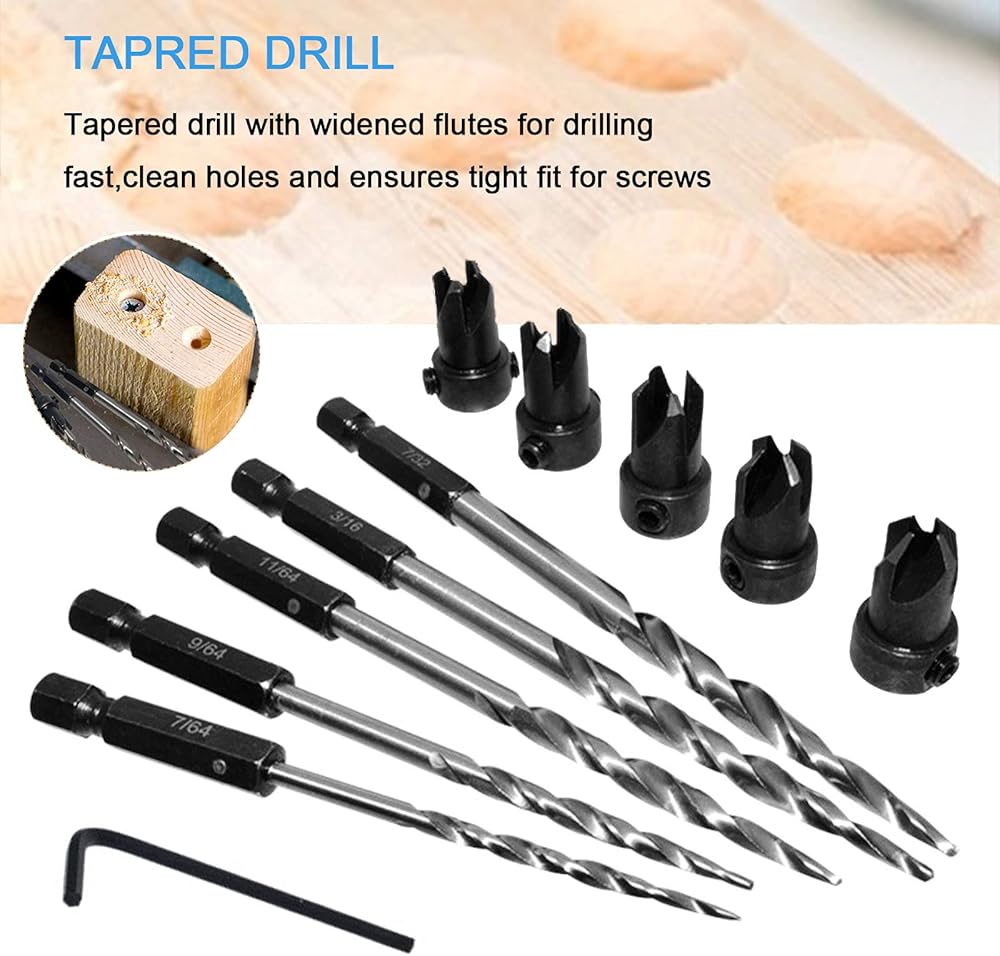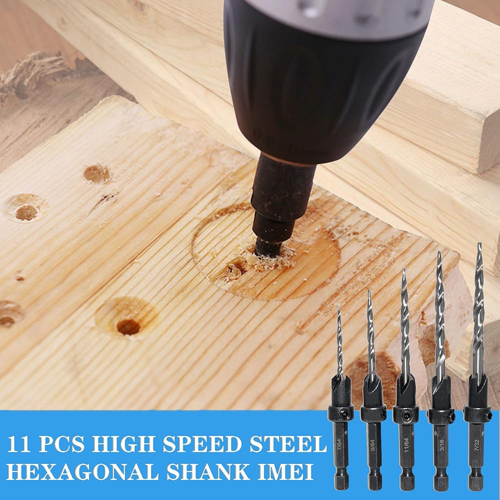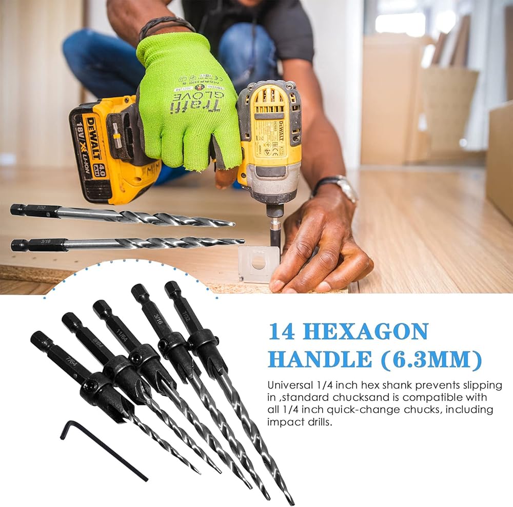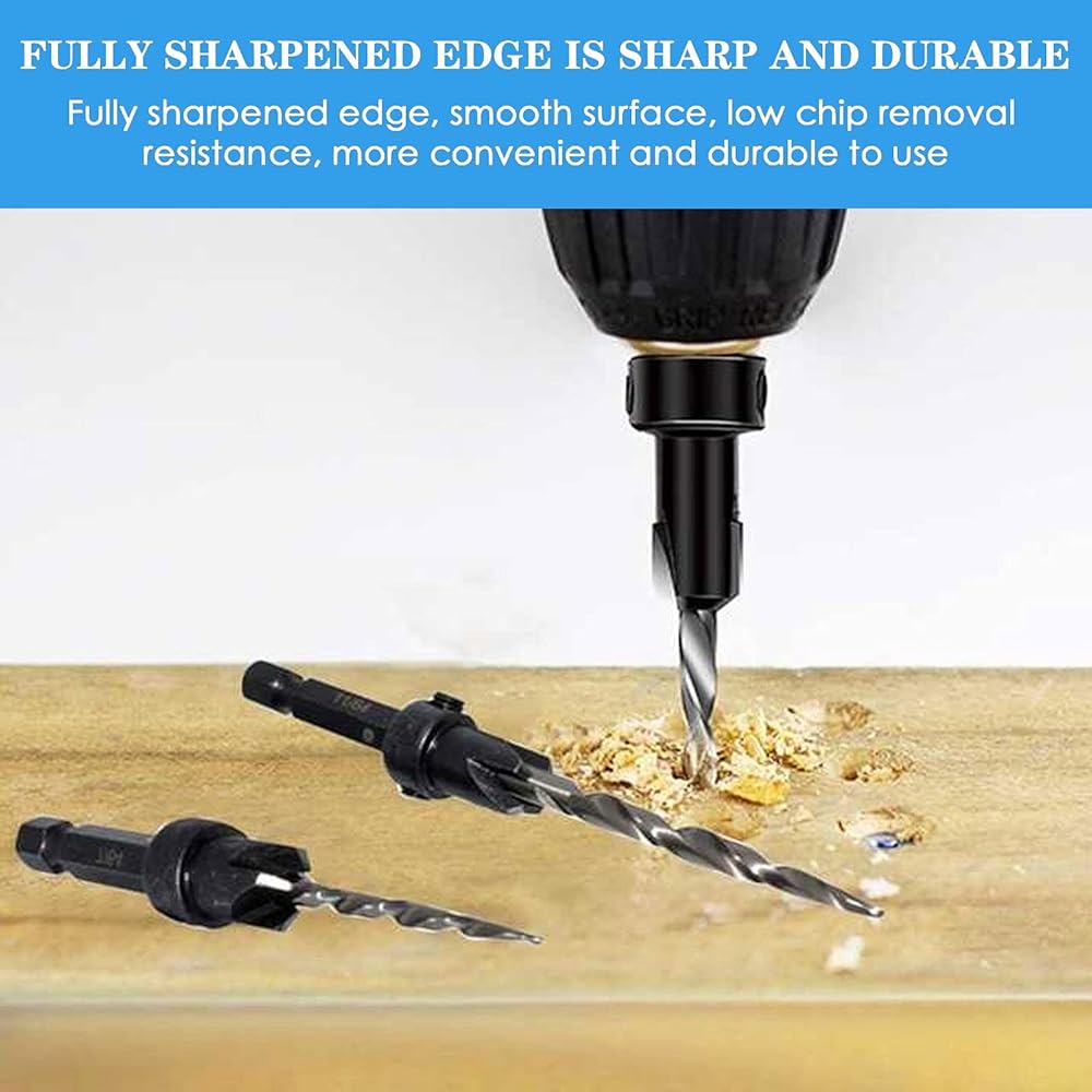 • BETTER PERFORMANCE: The countersink bit is made of M2 HSS (High Speed Steel), which shows better durability in the drilling process. And the pin-fastened drill bit is tightly bonded to the shank and will not loosen easily, which will make the drilling process easier in every way. At the same time, tapered drill bit is equipped with 5 different sizes #4 (7/64"), #6 (9/64"), #8 (11/64"), #10 (3/16"), #12 (7/32"), it will meet your various needs.