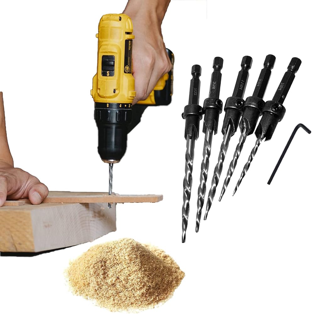 • VERSATILE USE: Comes with 5 pieces of replaceable drill bits as a bonus and covers the full range of screw sizes. The countersink bits are ideal for bench drill, hand drill, and a conventional electric drill, perfect for wood, fiberboard, particleboard, plywood, plastic, PVC, rubber, etc.