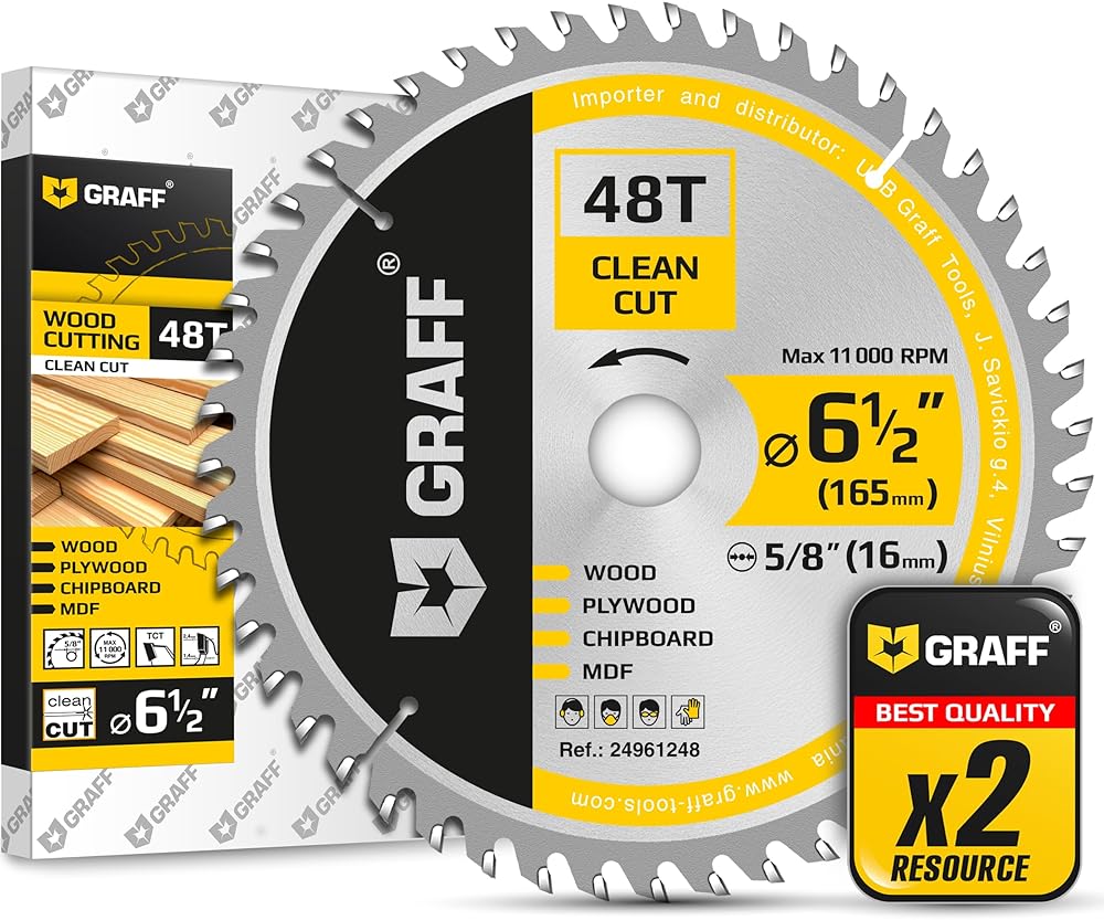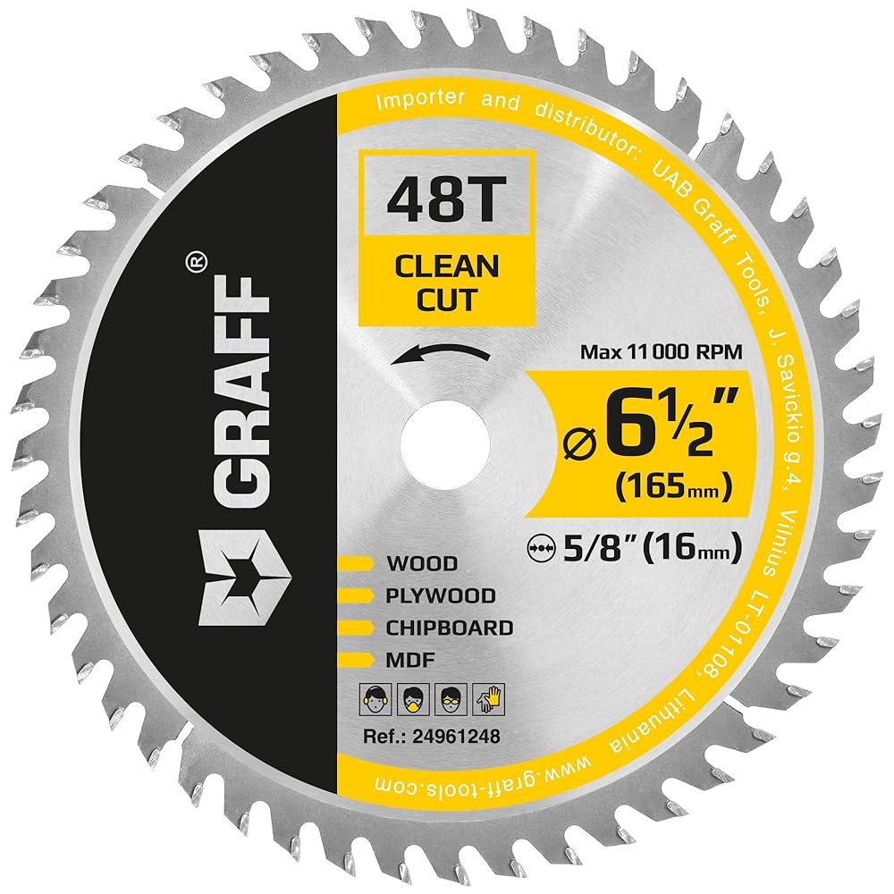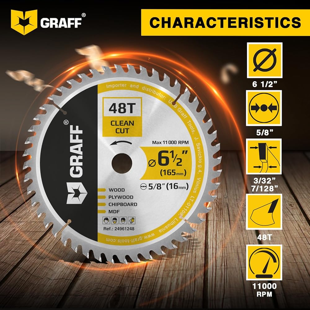 التطبيق - شفرة المنشار الدائرية GRAFF مناسبة لقطع الخشب والخشب الرقائقي والجدران الجافة وألواح MDF والبلاستيك وجميع المواد غير المعدنية الأخرى.