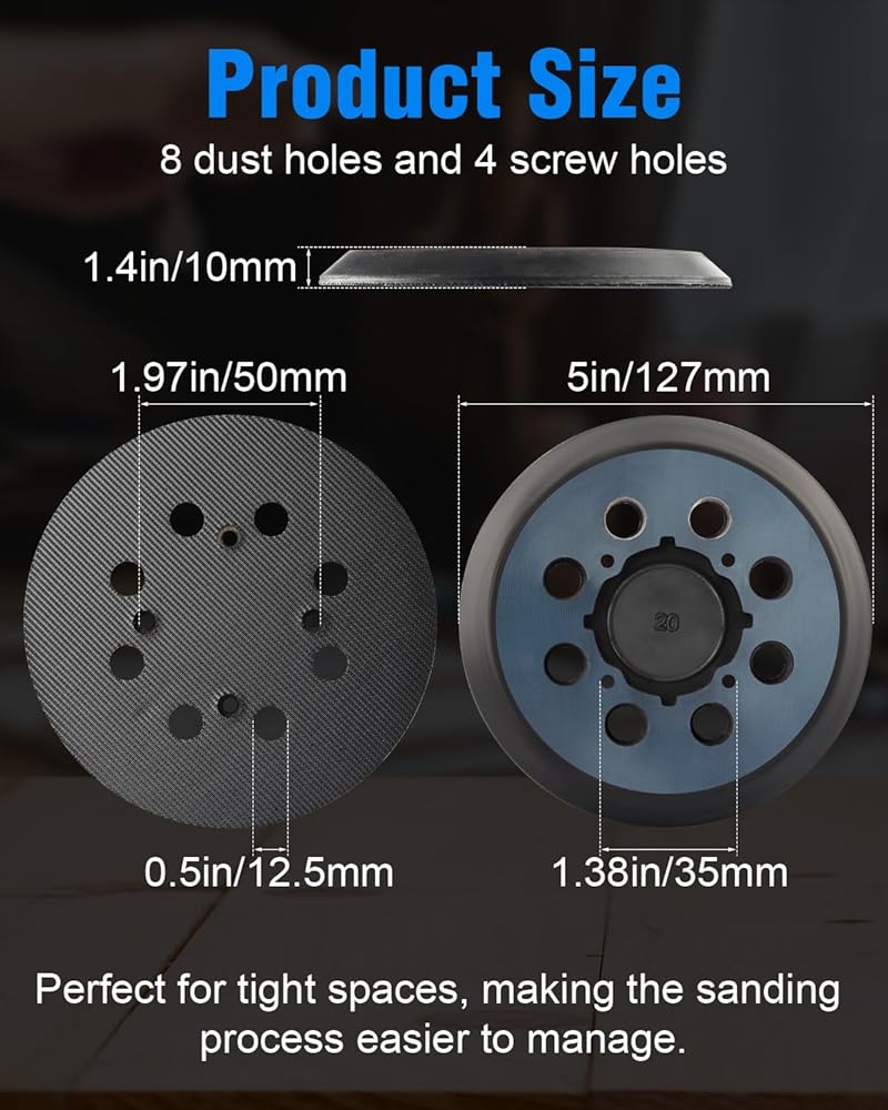 • سهلة التركيب - ما عليك سوى إزالة الوسادة القديمة باستخدام 4 فتحات براغي تثبيت، ويمكنك تأمين اللوحة الجديدة باستخدام البراغي الموجودة على ماكينة الصنفرة. مثالية للمساحات الضيقة، مما يجعل عملية الصنفرة أسهل في الإدارة. (ملاحظة: البراغي غير متضمنة.)