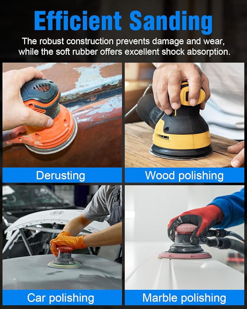 • صنفرة فعالة - مصنوعة من لوح دعم من البلاستيك الصلب ولوح من البولي يوريثين الناعم عالي الجودة، ويضمن استبدال وسادة الصنفرة أداءً طويل الأمد ومرونة لوسادات استبدال ماكينة الصنفرة المدارية. يمنع البناء القوي التلف والتآكل، بينما يوفر المطاط الناعم امتصاصًا ممتازًا للصدمات من أجل أسطح أكثر نعومة وتحسين كفاءة الصنفرة.