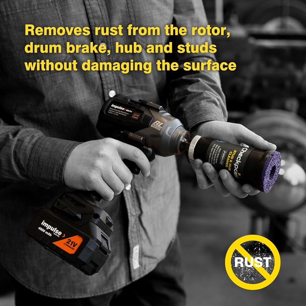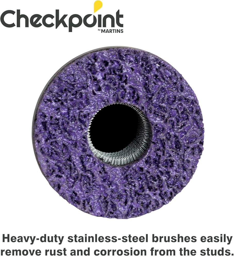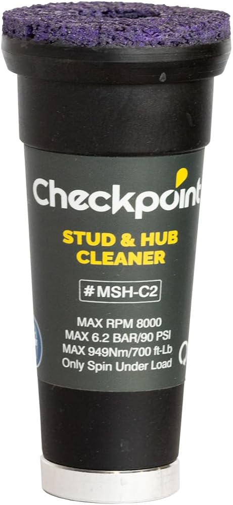 The Checkpoint Stud and Hub Cleaning tool quickly and effectively removes rust, corrosion and dirt from cars, SUVs and light trucks' rotors, hubs, studs and the back of the wheels. This helps to ensure the secure fitment of wheels and wheel nuts to minimize the risk of a wheel detachment. It also prevents the hub from running off center leading to vibrations, accelerated wear and tear on bearings and other components. When cleaning, rotate clockwise onto the stud and counterclockwise off the stud. Excessive force is unnecessary - there is no need to push or pull the tool while on the thread. The Checkpoint Cleaning Tool will last way longer than anything else on the market.