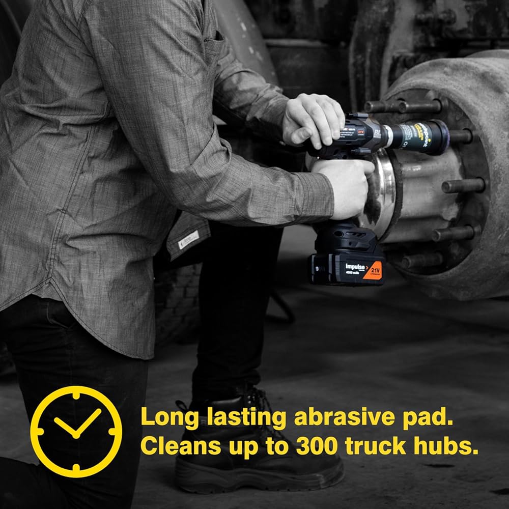 LONG LASTING ABRASIVE pad cleans up to 800 car hubs.