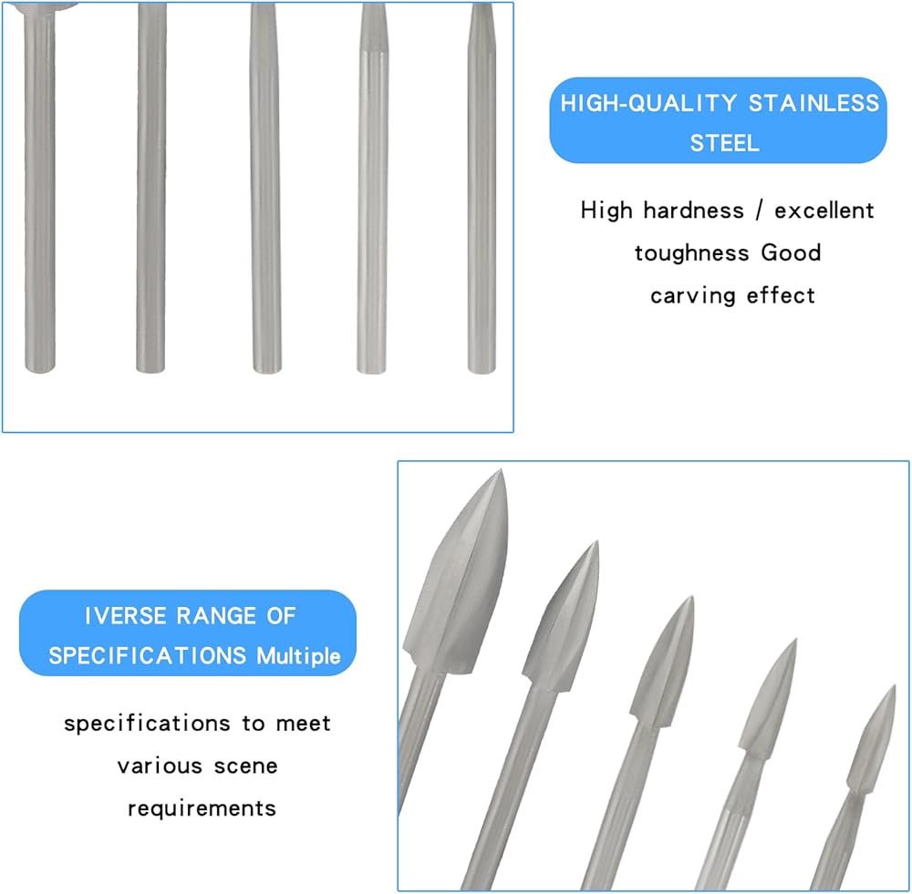 Fine Carving for Impressive Results: Showcase your creativity and skills with these wood carving drill bits. Ideal for DIY, engraving, model making, and more, they are essential tools to create remarkable masterpieces.