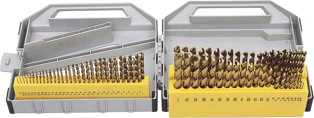 The Klutch 115-Pc. Titanium-Coated Drill Bit Set features high-quality M2 high-speed steel titanium-coated drill bits that last up to 6 times longer than standard drill bits. 135° split point reduces walking for easier starts, is self-centering and provides efficient boring.