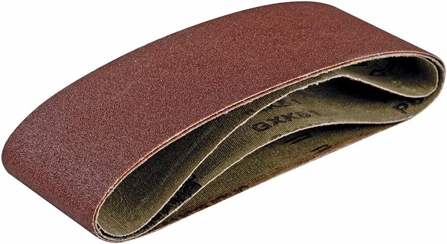 High quality 60 Grit Aluminum Oxide sanding belt provides outstanding life and durability. Made with aluminum oxide grain with epoxy resin for load resistance. Strong polyester X-weight backing. Fits all 3" x 21" sanders.
