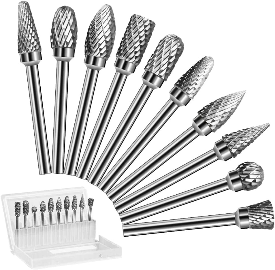 نتوءات كربيد قطع، 10 قطعة نتوءات دوارة كربيد نهاية مطحنة مجموعة لنحت الخشب الحجر الحفر أداة العمل المعدنية
