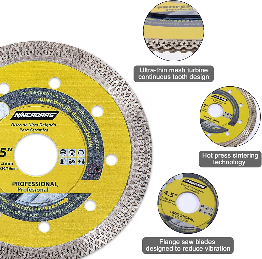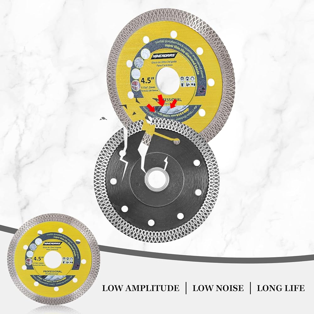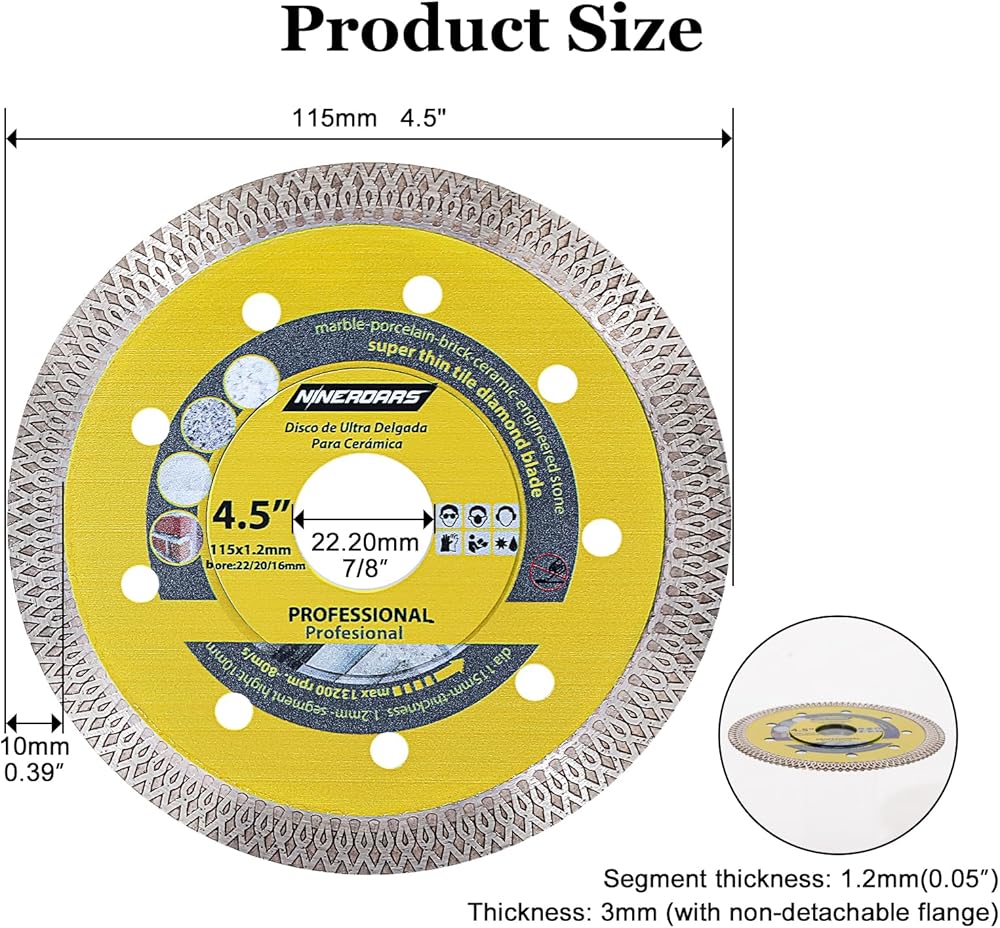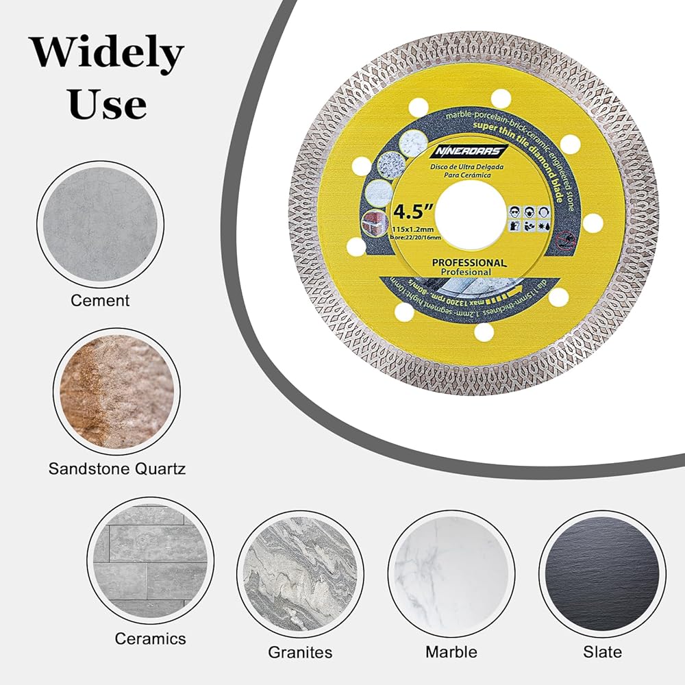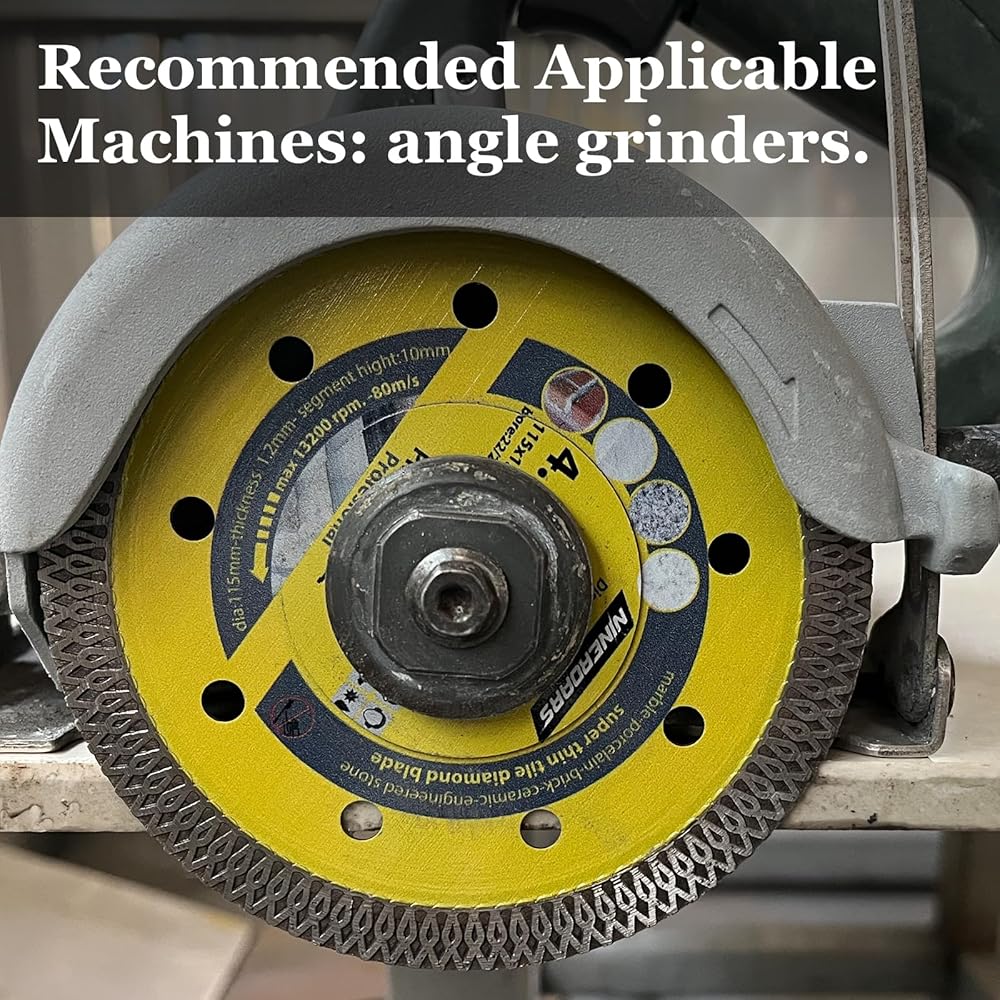 تعتبر هذه الشفرات مثالية لقطع المواد المختلفة، مثل السيراميك والبلاط والجرانيت والحجر الرملي والكوارتز والرخام والطوب والأردواز والدعائم الأسمنتية وغيرها. تعتبر ماكينات طحن الزوايا من الآلات القابلة للتطبيق الموصى بها، وهي مناسبة للقطع الجاف والرطب.