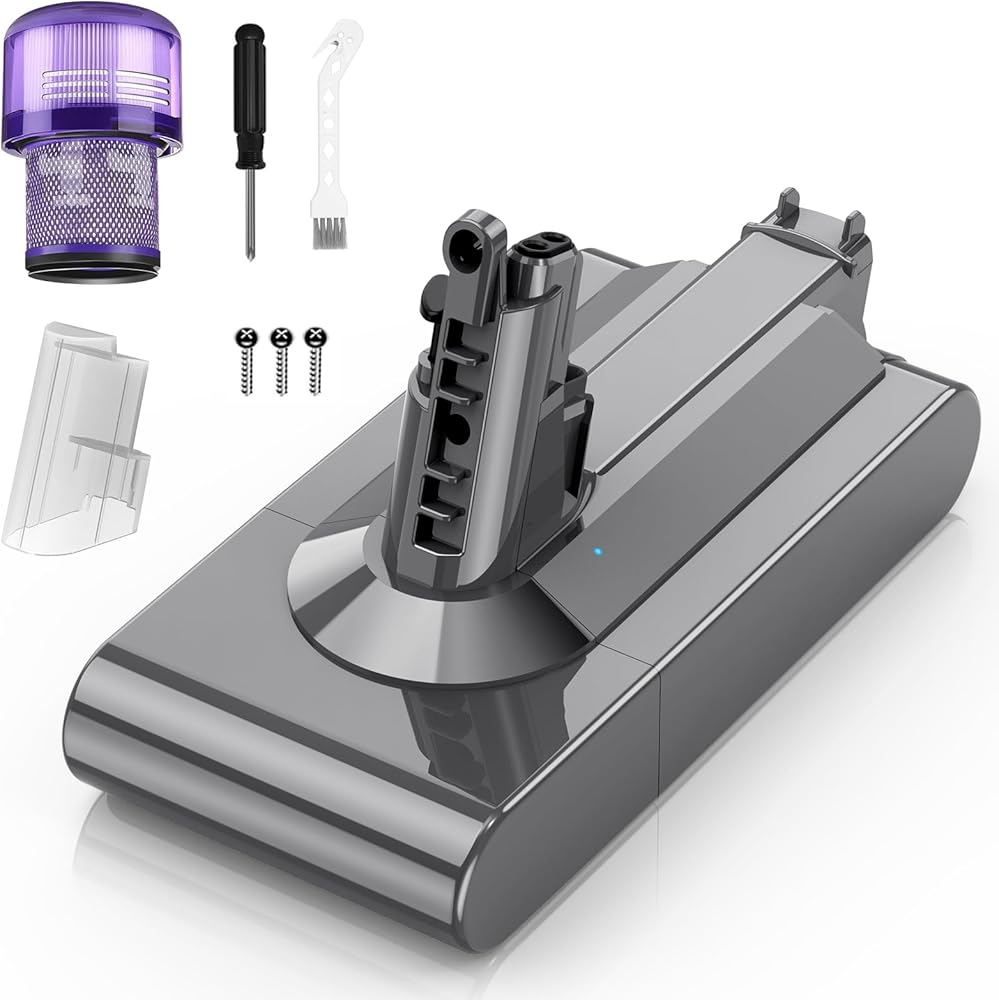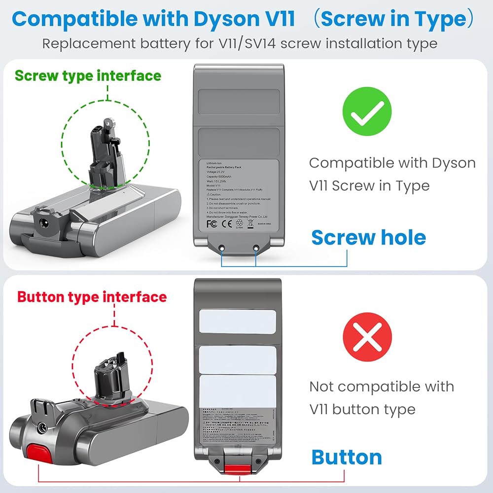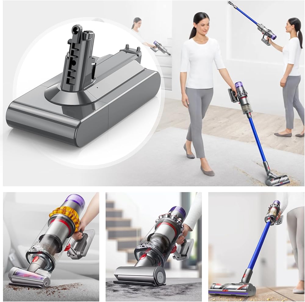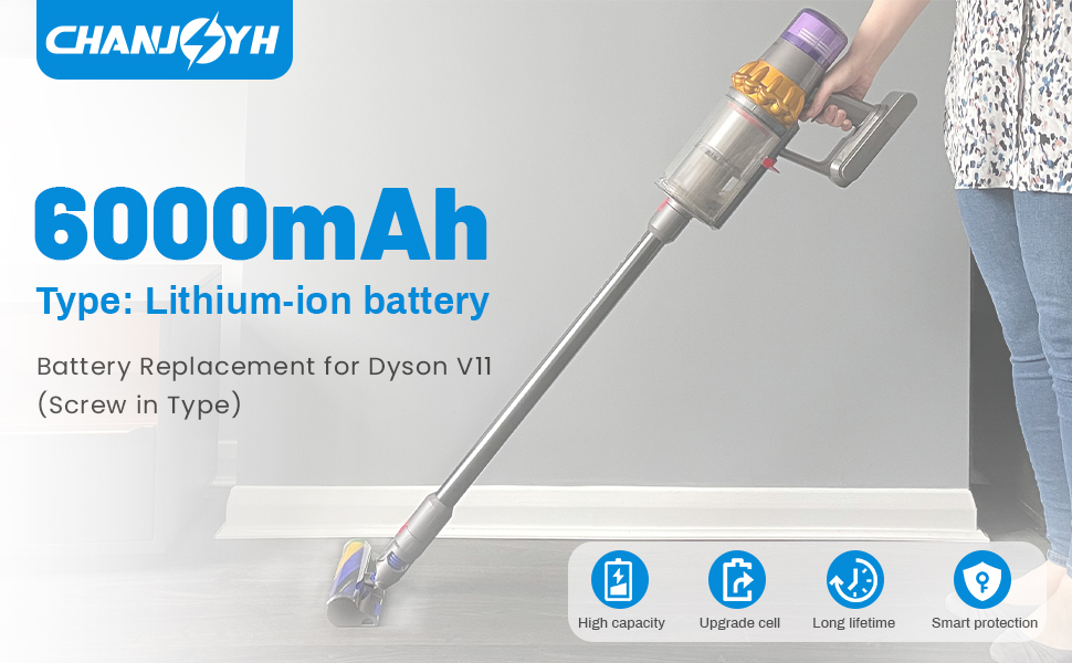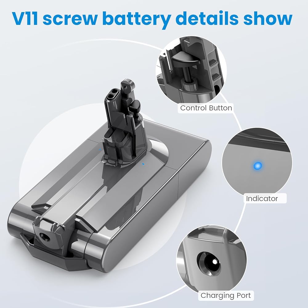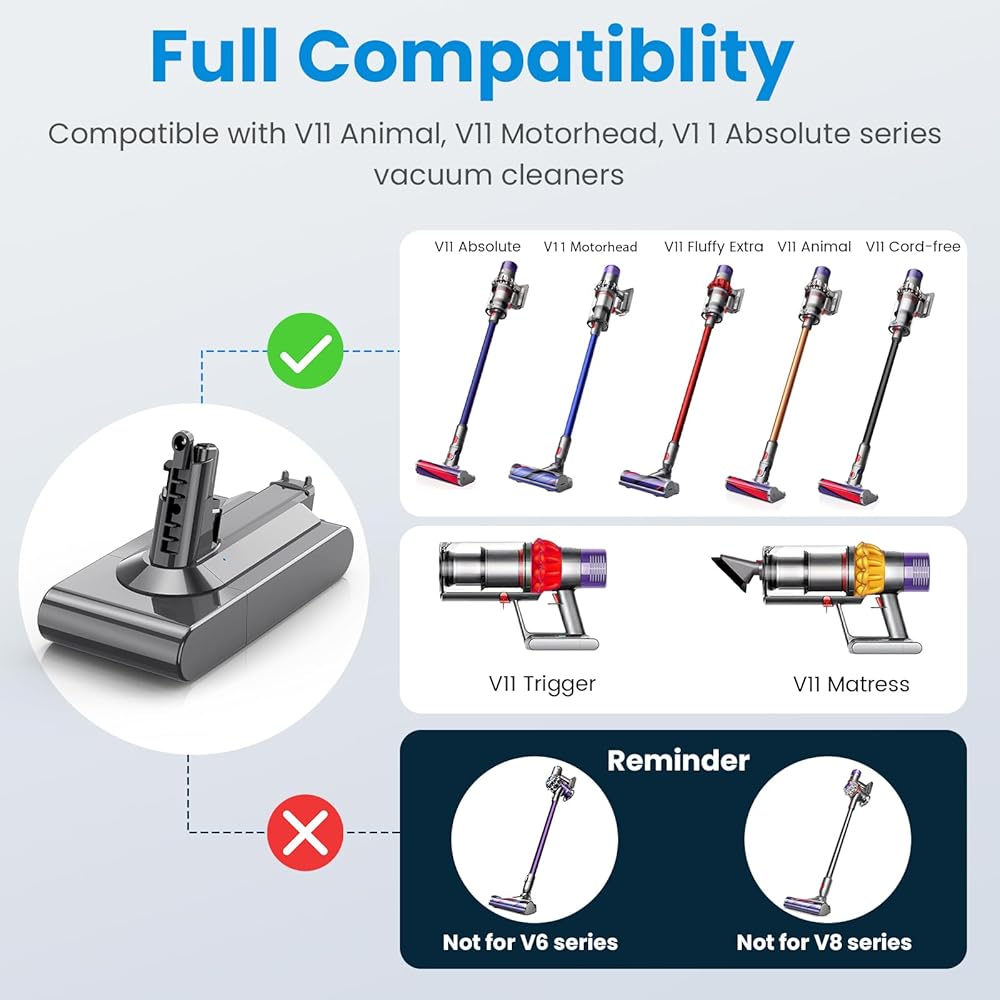 أداء ممتاز للبطارية - يستخدم استبدال بطارية V11 لدايسون خلية بطارية ليثيوم أيون مطورة، 25.2 فولت 6000 مللي أمبير. خلية بطارية عالية السعة تجعل مكنسة V11 الخاصة بك أكثر قوة وعمرًا أطول