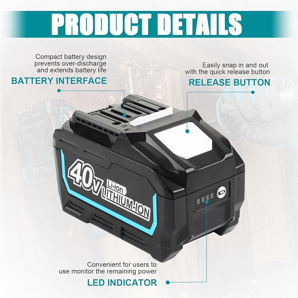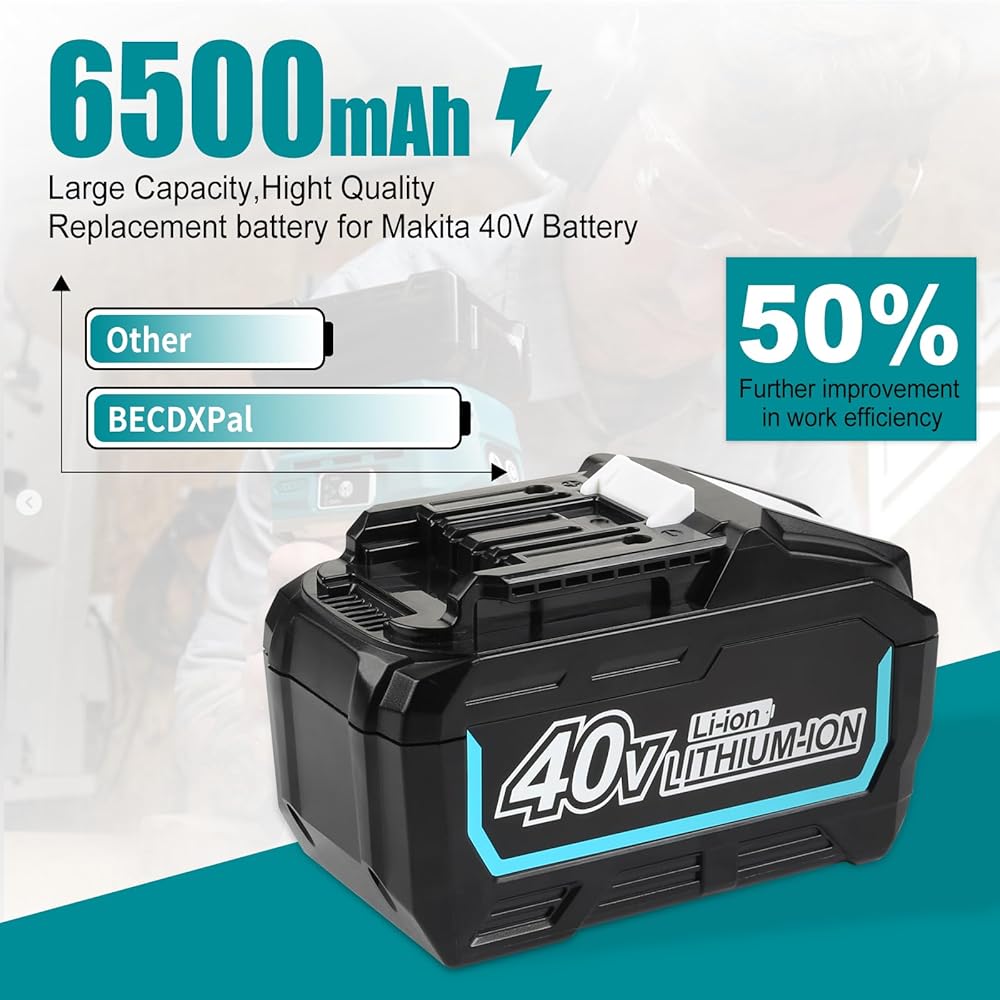• 🔋 【استبدال بطارية ماكيتا 40 فولت 】 السعة: 6500 مللي أمبير | الجهد: 40 فولت | النوع: ليثيوم أيون | تمنح بطاريات الليثيوم أيون القوية الأدوات الكهربائية بقدرة 40 فولت مزيدًا من الطاقة وأوقات تشغيل أطول.