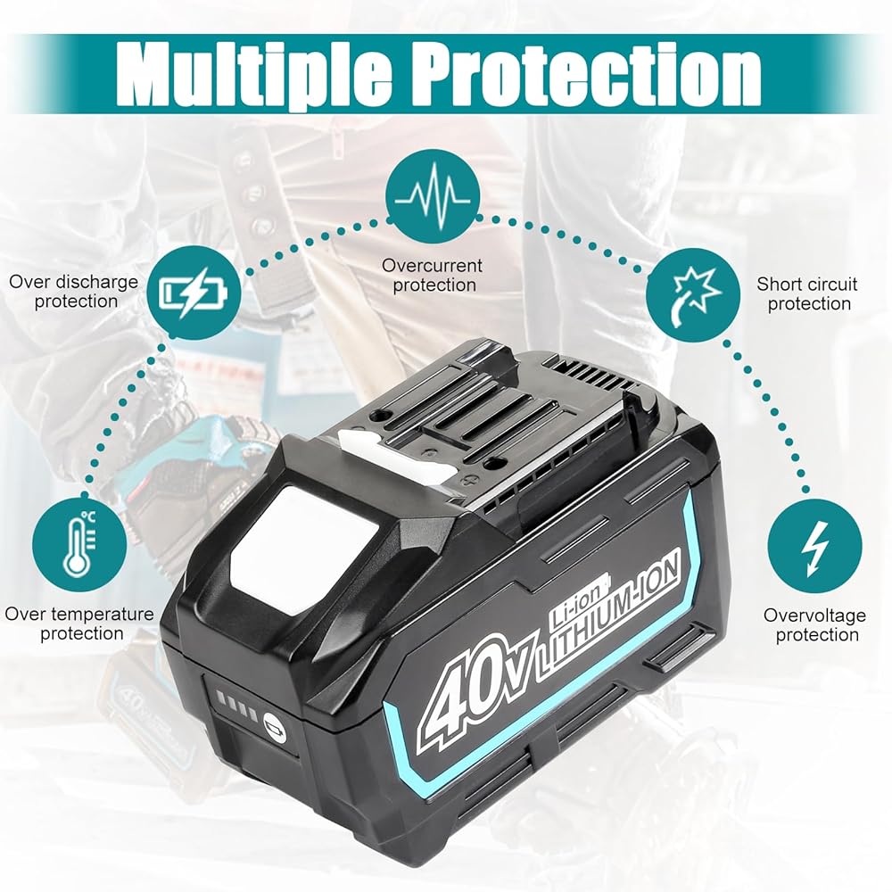 • 🔋【فعالة ومتينة】4 مؤشرات LED تظهر بدقة الطاقة المتبقية، وشحن أسهل وفي الوقت المناسب، وتحسين الكفاءة وإطالة عمر البطارية. البطارية البديلة لبطارية ماكيتا 40 فولت مصنوعة من مادة أكريلونتريل بوتادين ستايرين + البولي كربونات الأقوى للعلبة، مما يوفر مقاومة ممتازة للسقوط ومقاومة للماء.