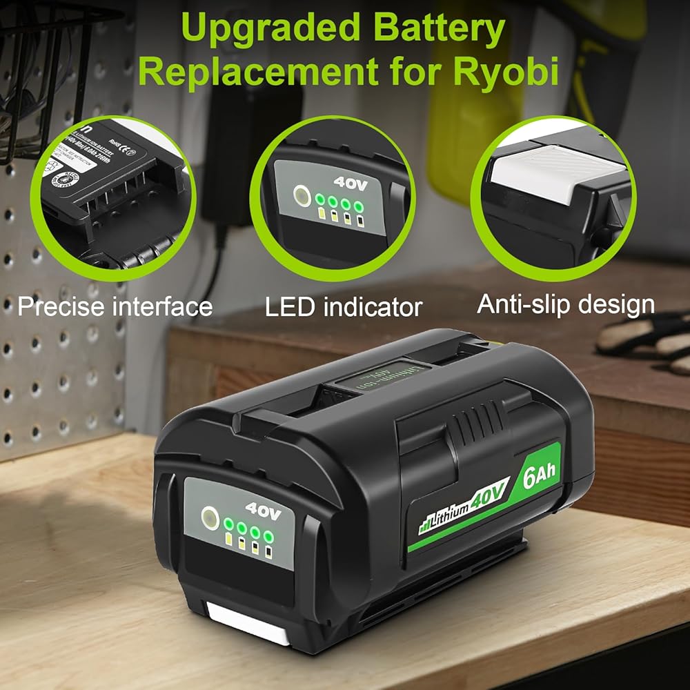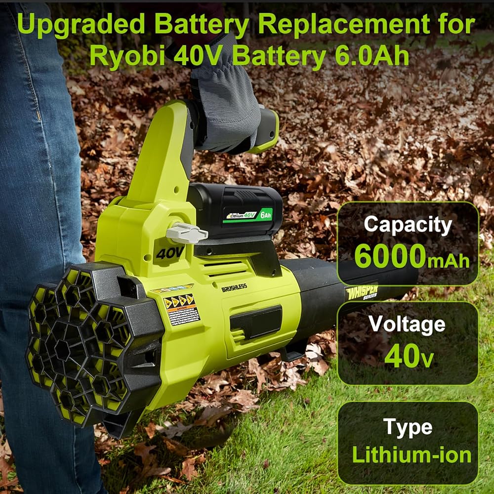 [Replacement for Ryobi 40v Battery] High Capacity Li-ion: 6000mAh | Voltage: 40V | Removable & Rechargeable | High capacity battery for extended run time. NOTE: Let the battery cool down before recharge.