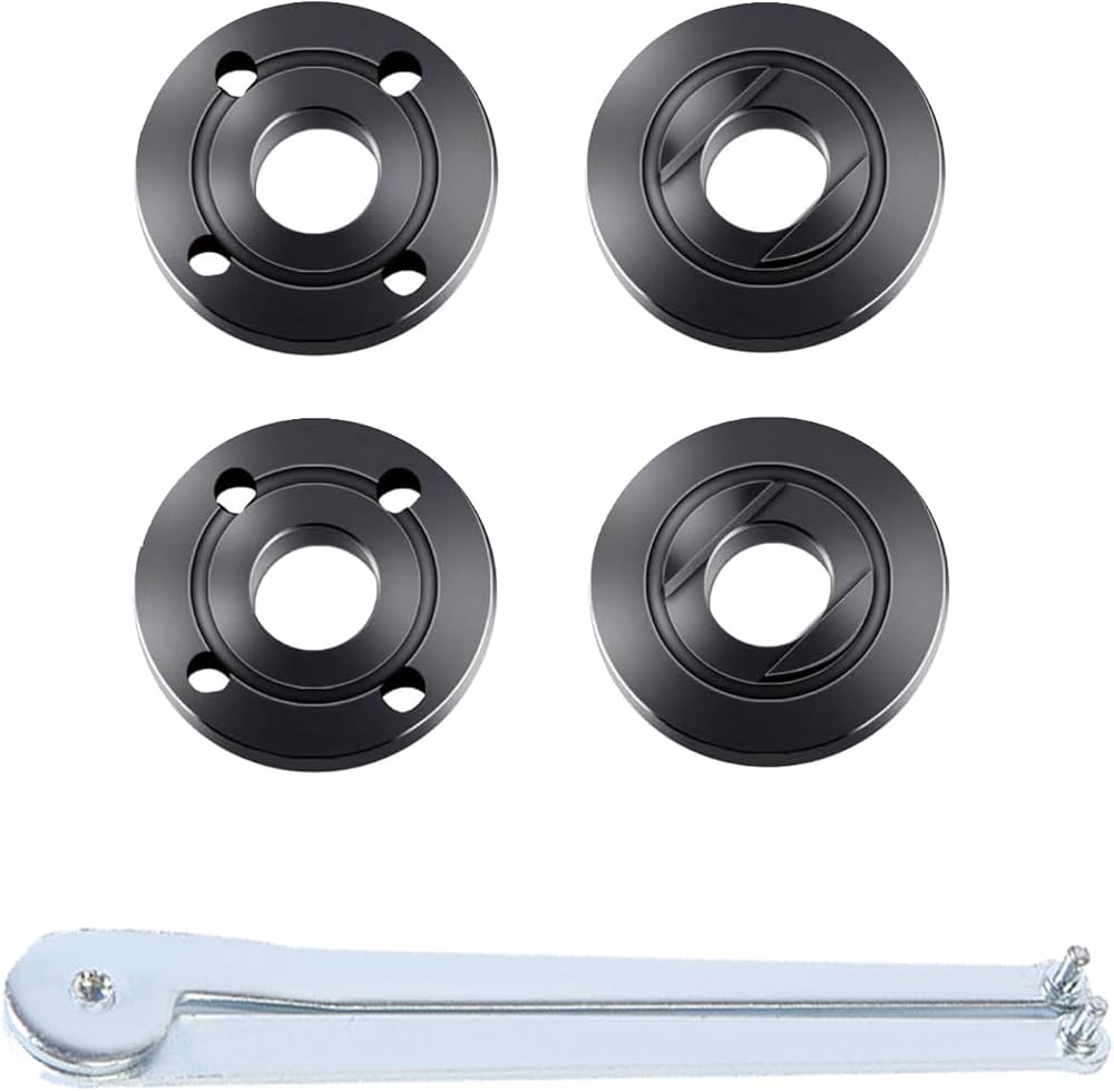 8 قطع من صواميل شفة طاحونة الزوايا 4 بوصات مناسبة لجميع 4-1/2 بوصة مع مفتاح ربط قابل للتعديل لاستبدال شفة طاحونة زاوية ماكيتا وريوبي وديوالت وميلووكي والحرفيين