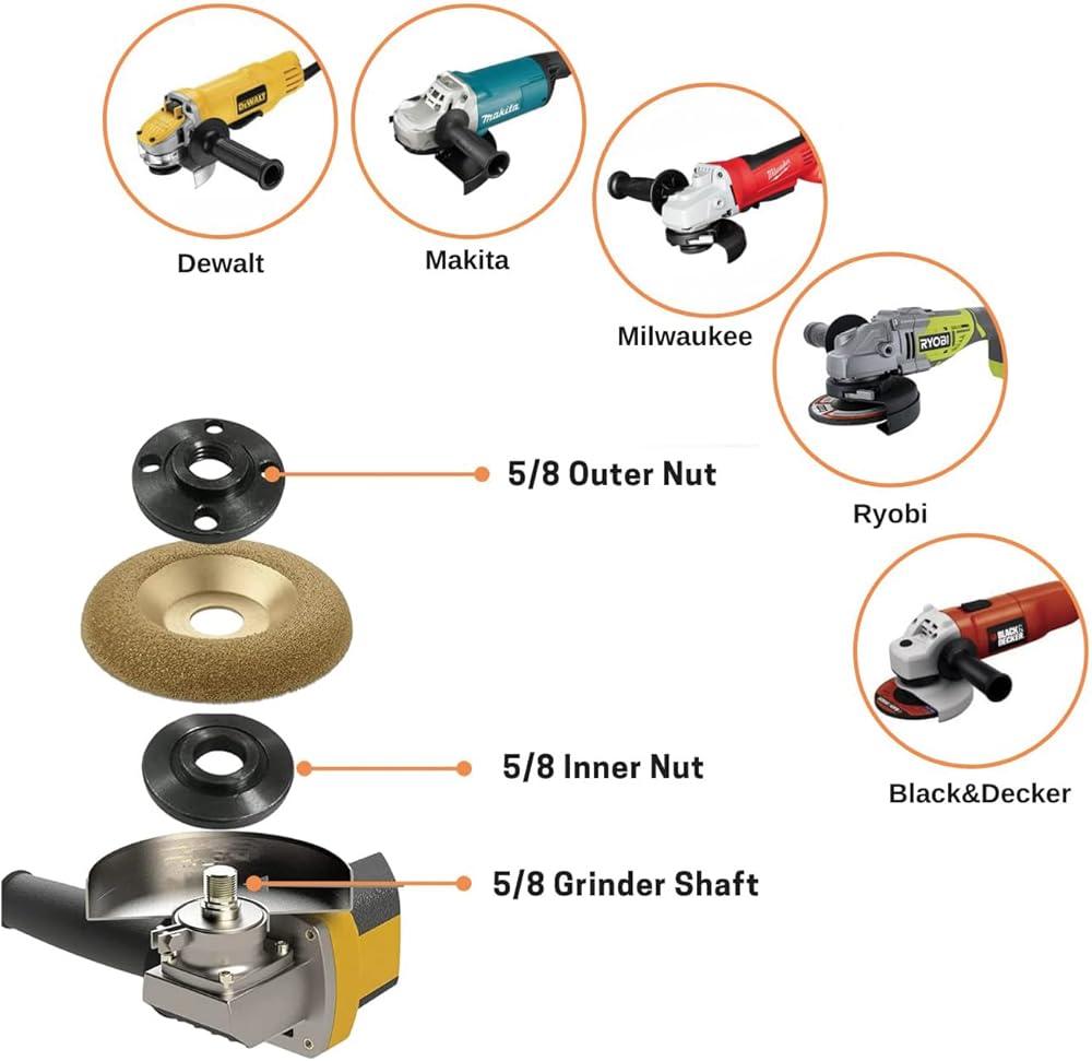• Attention: It is important to note that all grinders vary in size and each brand may have different size grinders. Take a moment to inspect your grinder and locate the information on the tool. Identify the size of your flange nut and ensure it matches the correct size. Please double-check your size to ensure accuracy! Thank you for your attention to detail.
